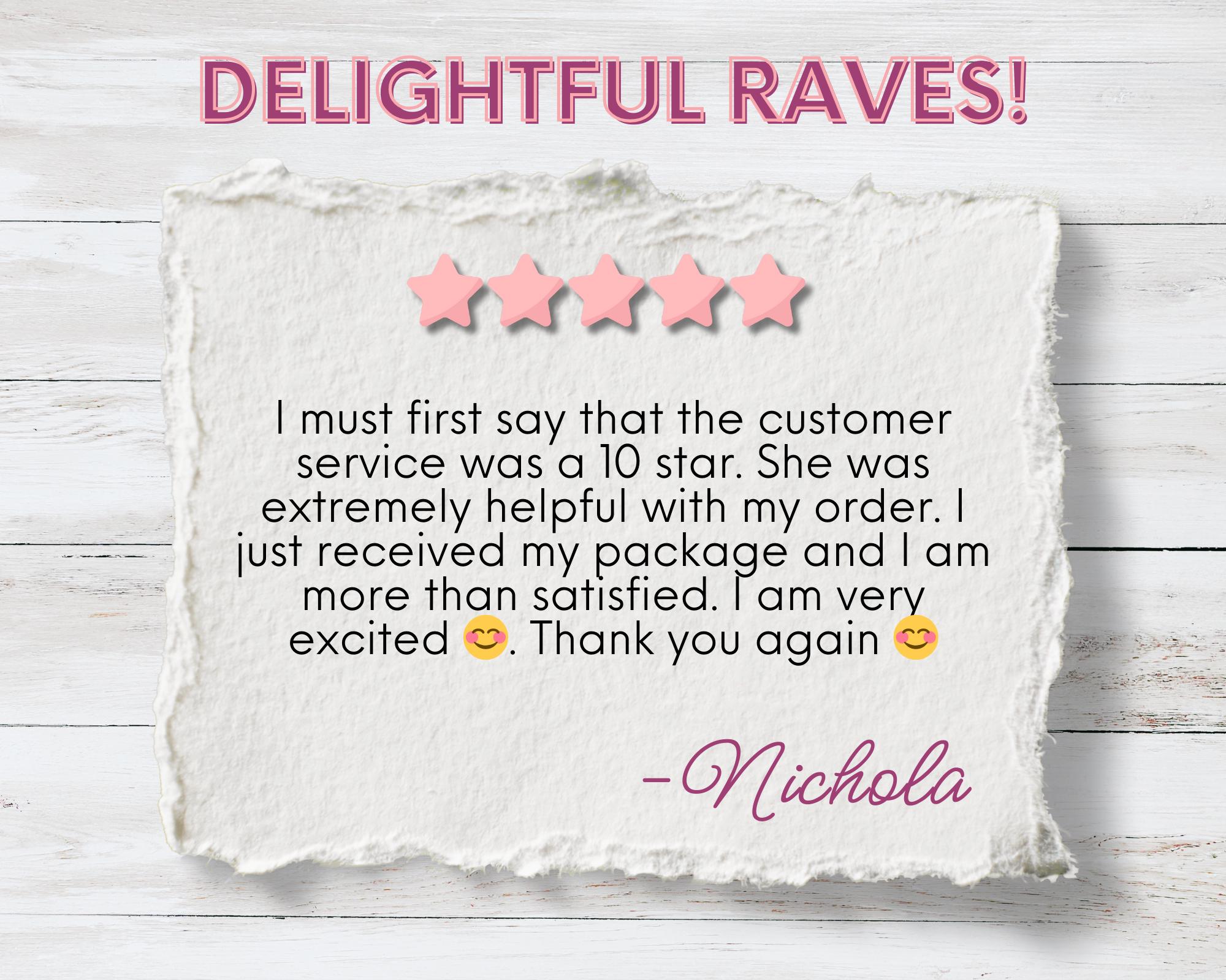 DelightfulCreationsAZ is not liable for any products damaged, lost or stolen during shipping. Please contact the shipment carrier to report the issue and file a claim. We are not responsible for lost packages due to incorrect or incomplete addresses. Please ensure that all shipping information is accurate when placing your order.