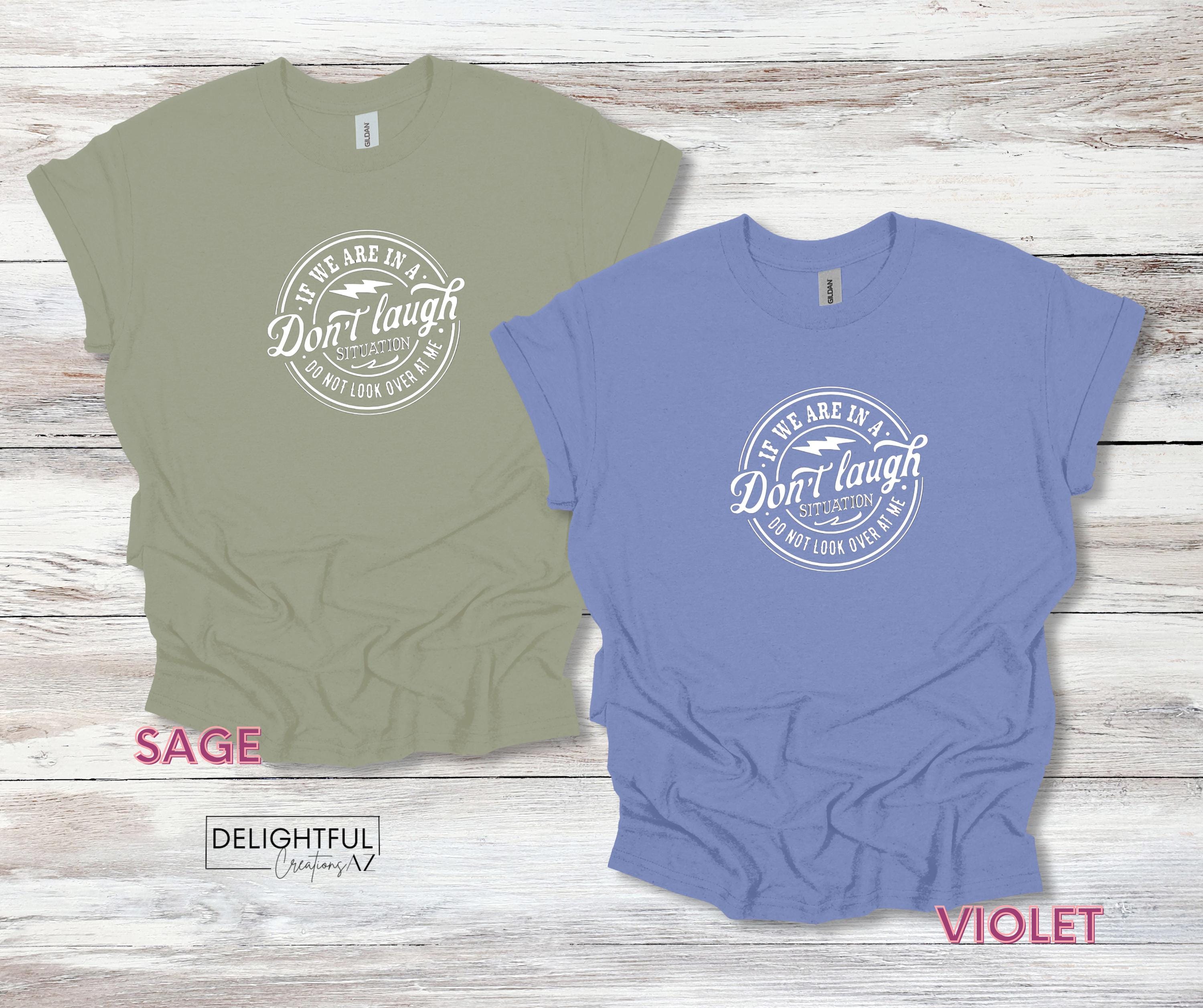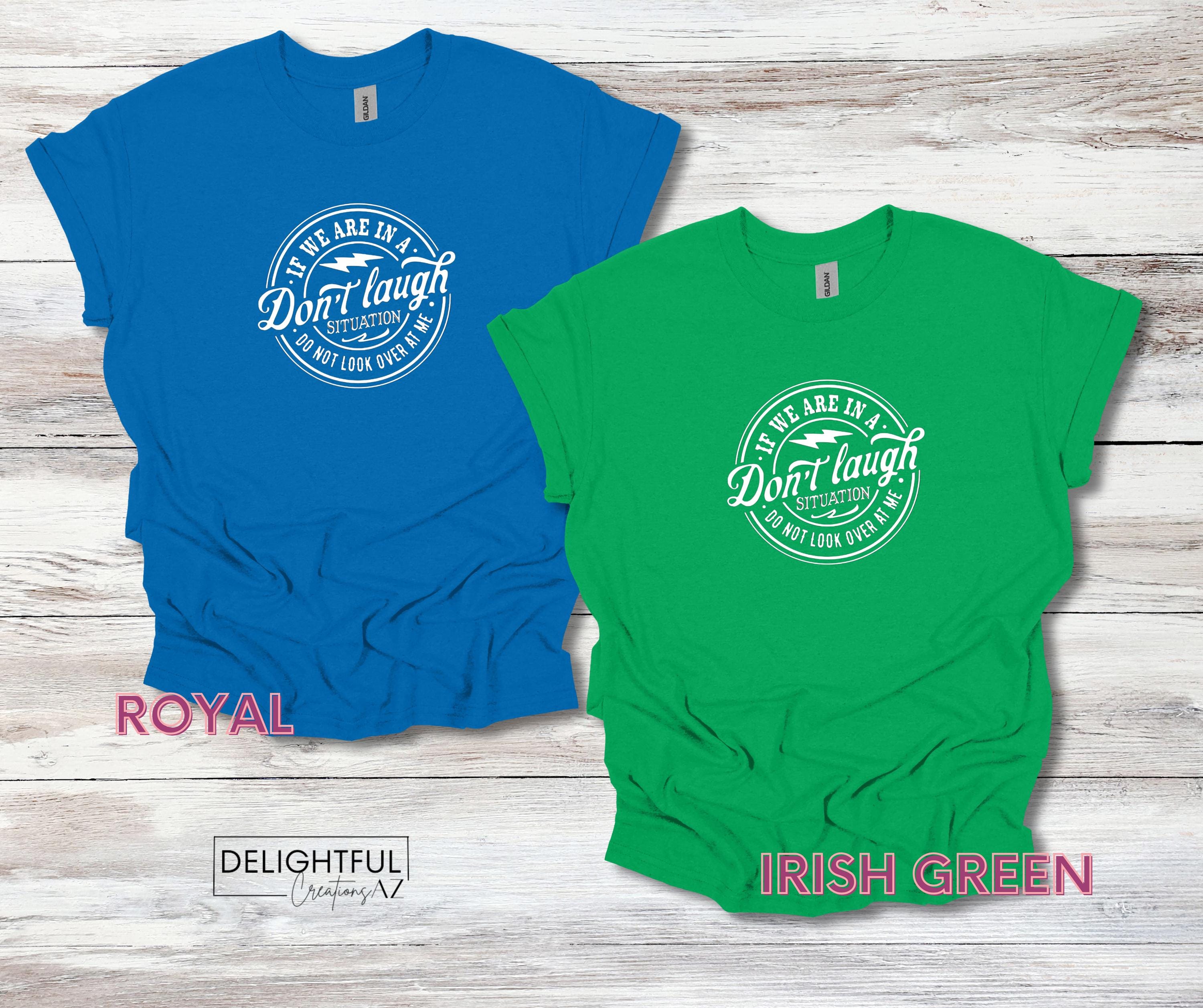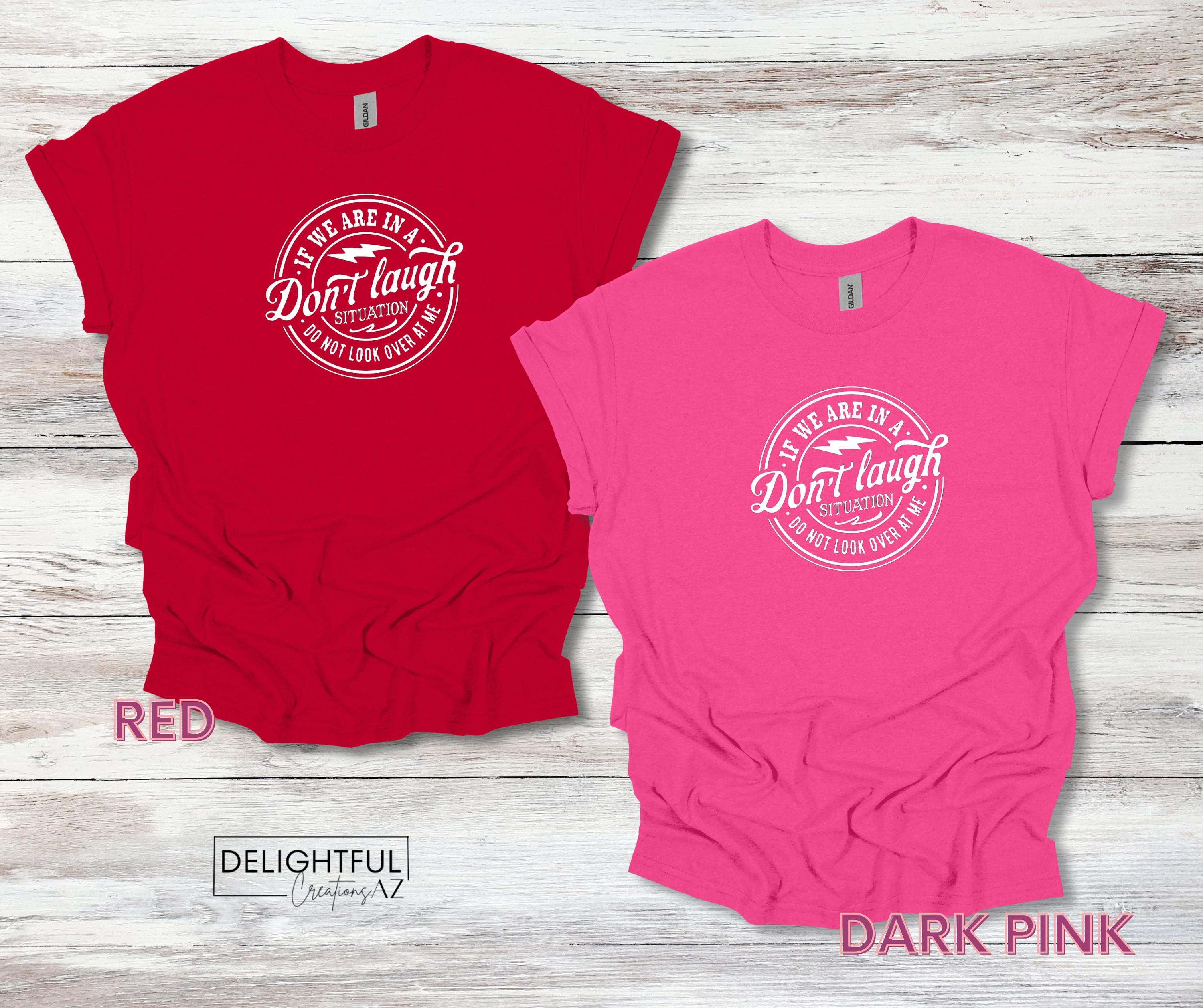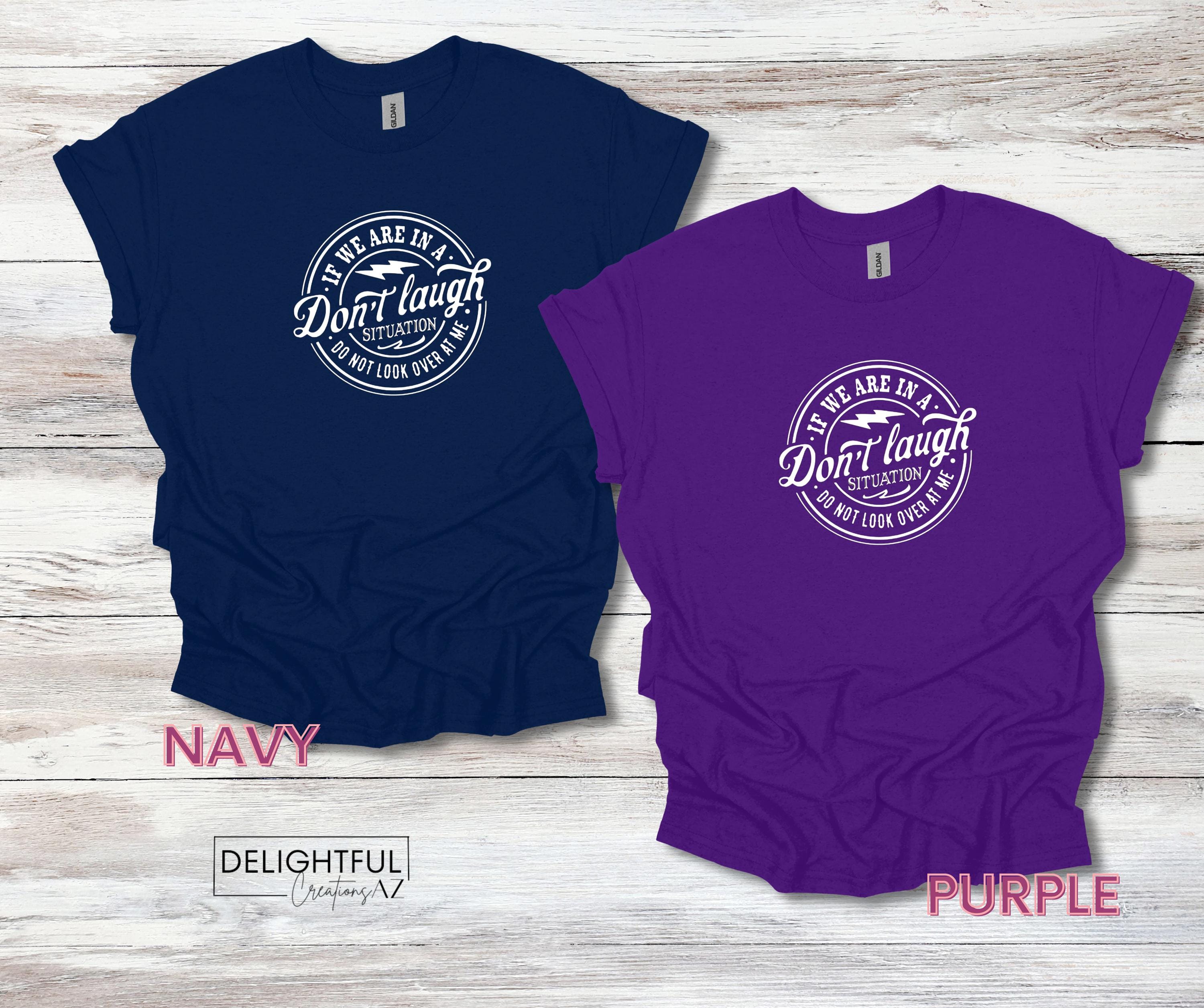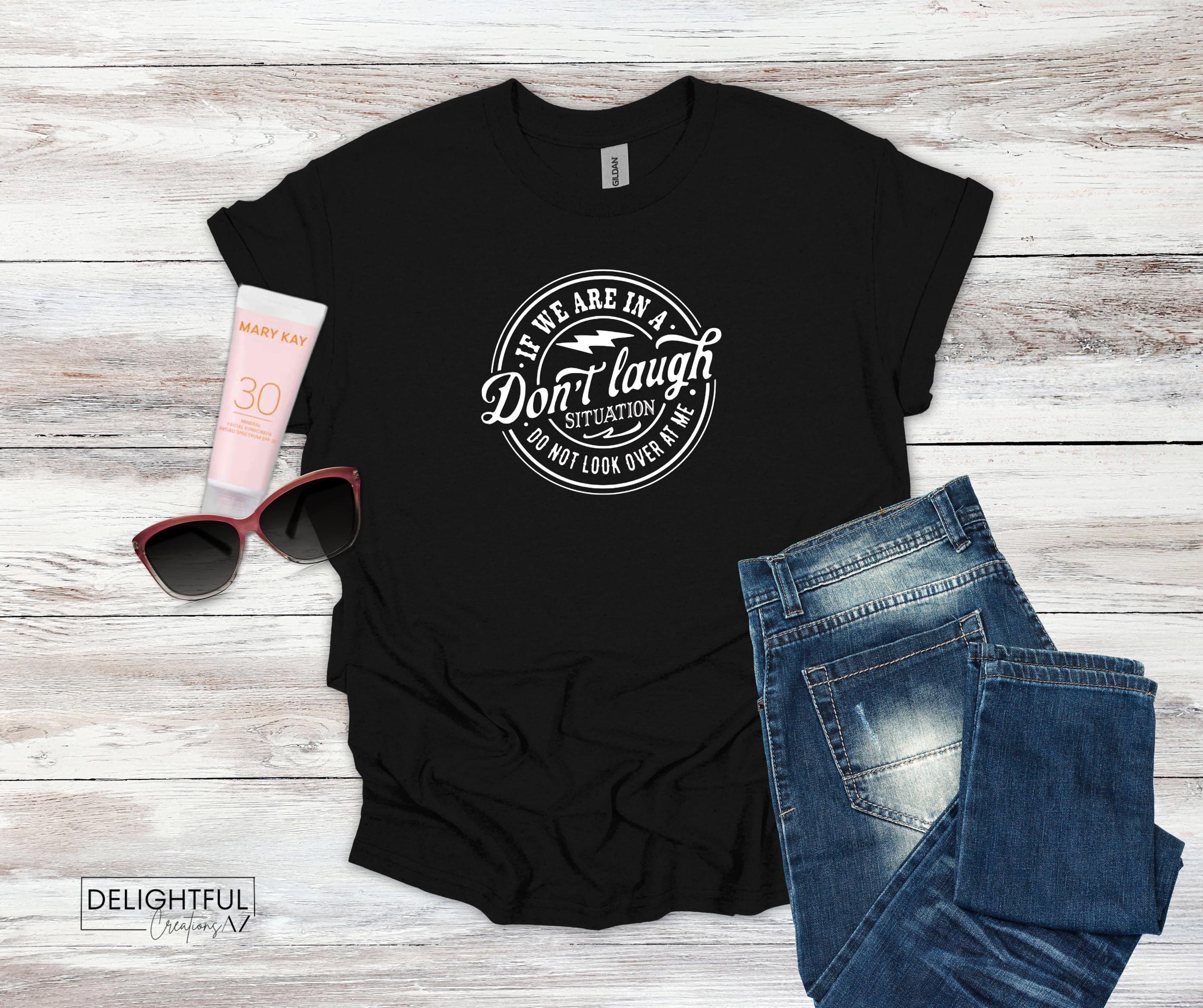 This "Don't Laugh" shirt definitely makes a statement. It says "If we are in a Don't Laugh situation, don't look over at me!" It's a great way to display your sassy & sarcastic side.