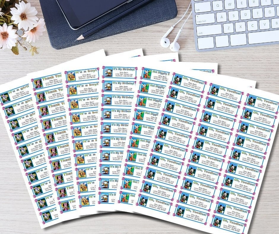 Add a personal touch to your party with these custom matte finish address labels. Each pack contains 30 labels, perfect for invitations, thank you cards, books, and personal items. Customize them with your desired text.