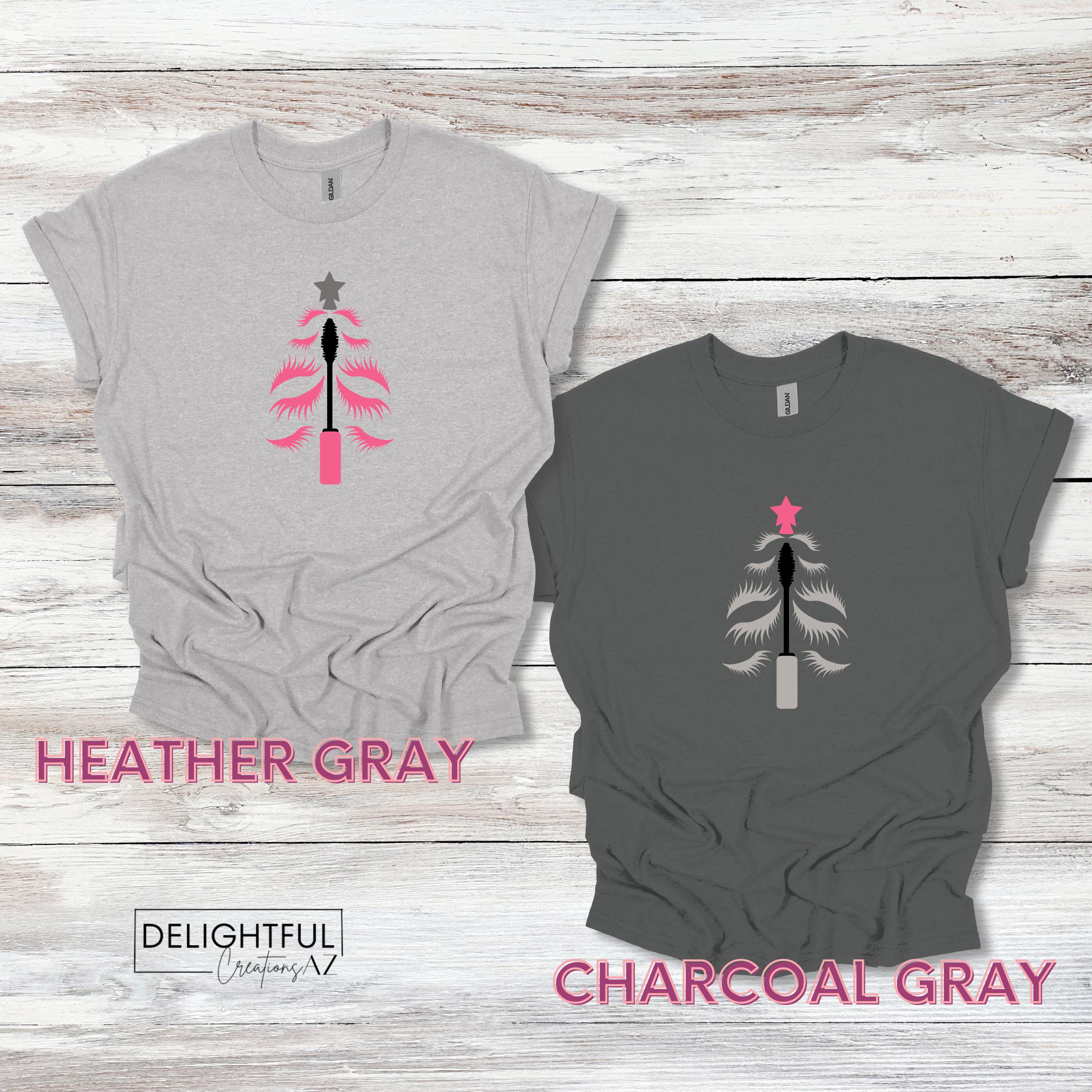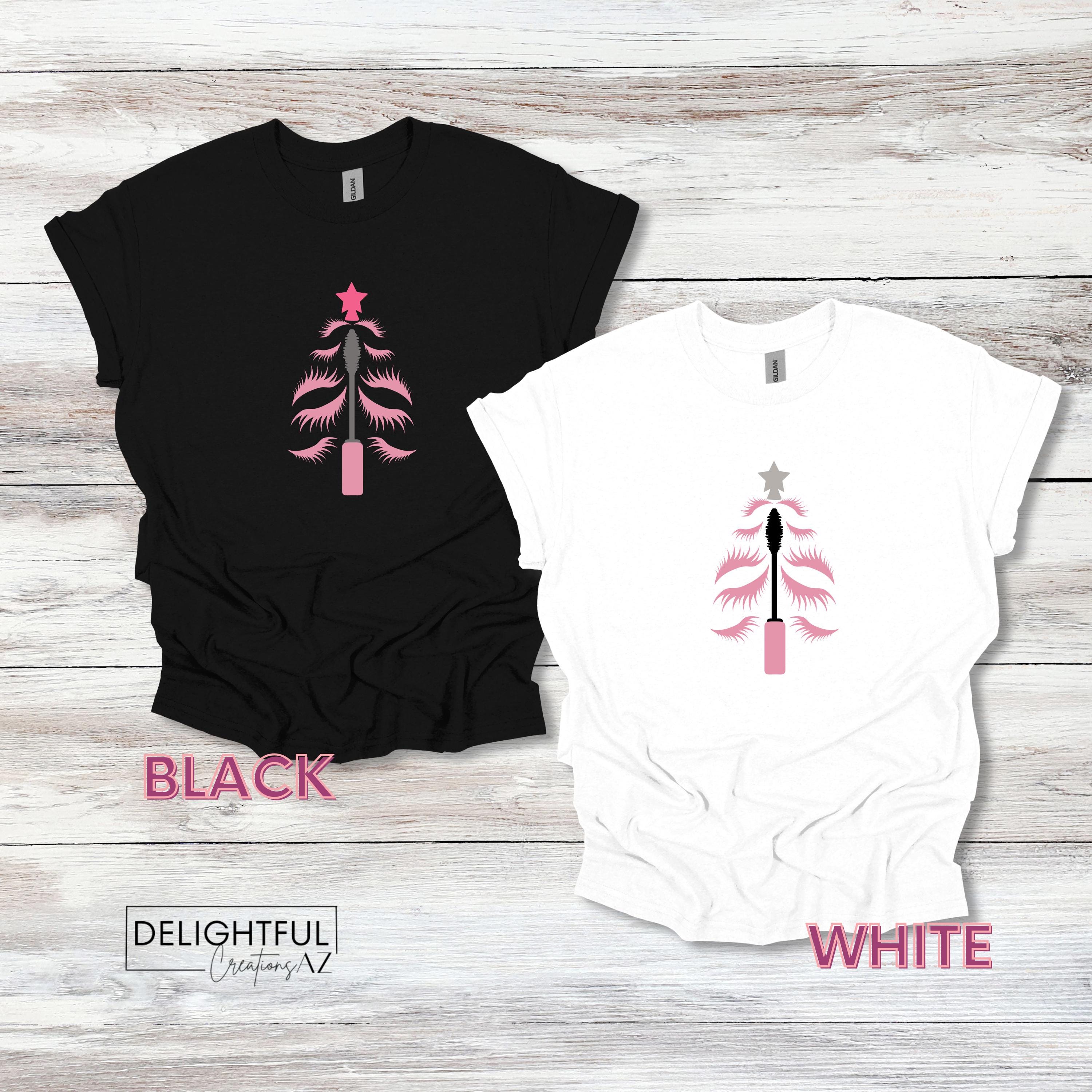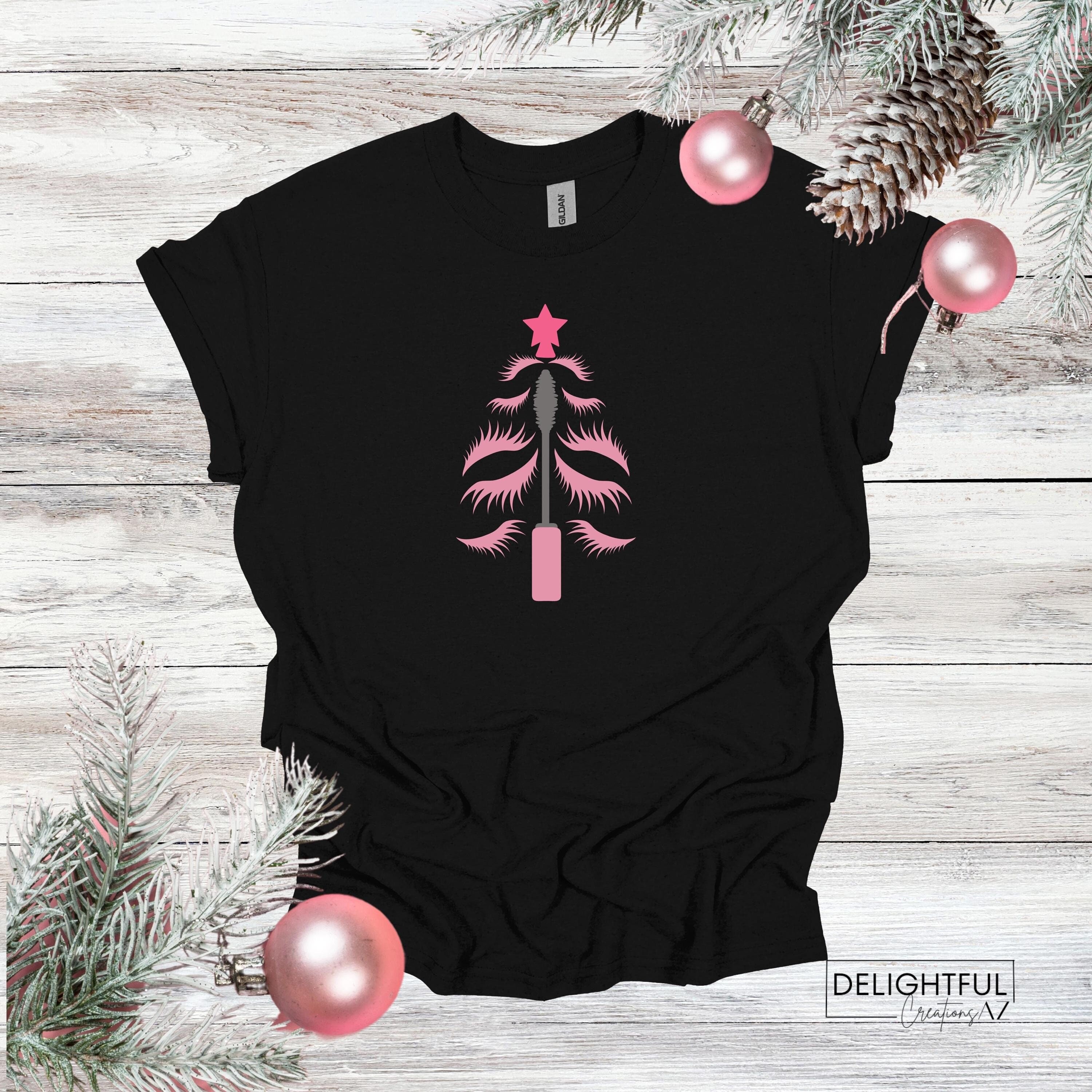 Whether you're lounging at home or out and about, this shirt is a great way to showcase your love for all things makeup. Pair it with your favorite jeans or a cute skirt for a casual yet chic look. Ideal for gifting to friends or treating yourself, this Eyelash Christmas Tree shirt is a must-have for anyone passionate about makeup.