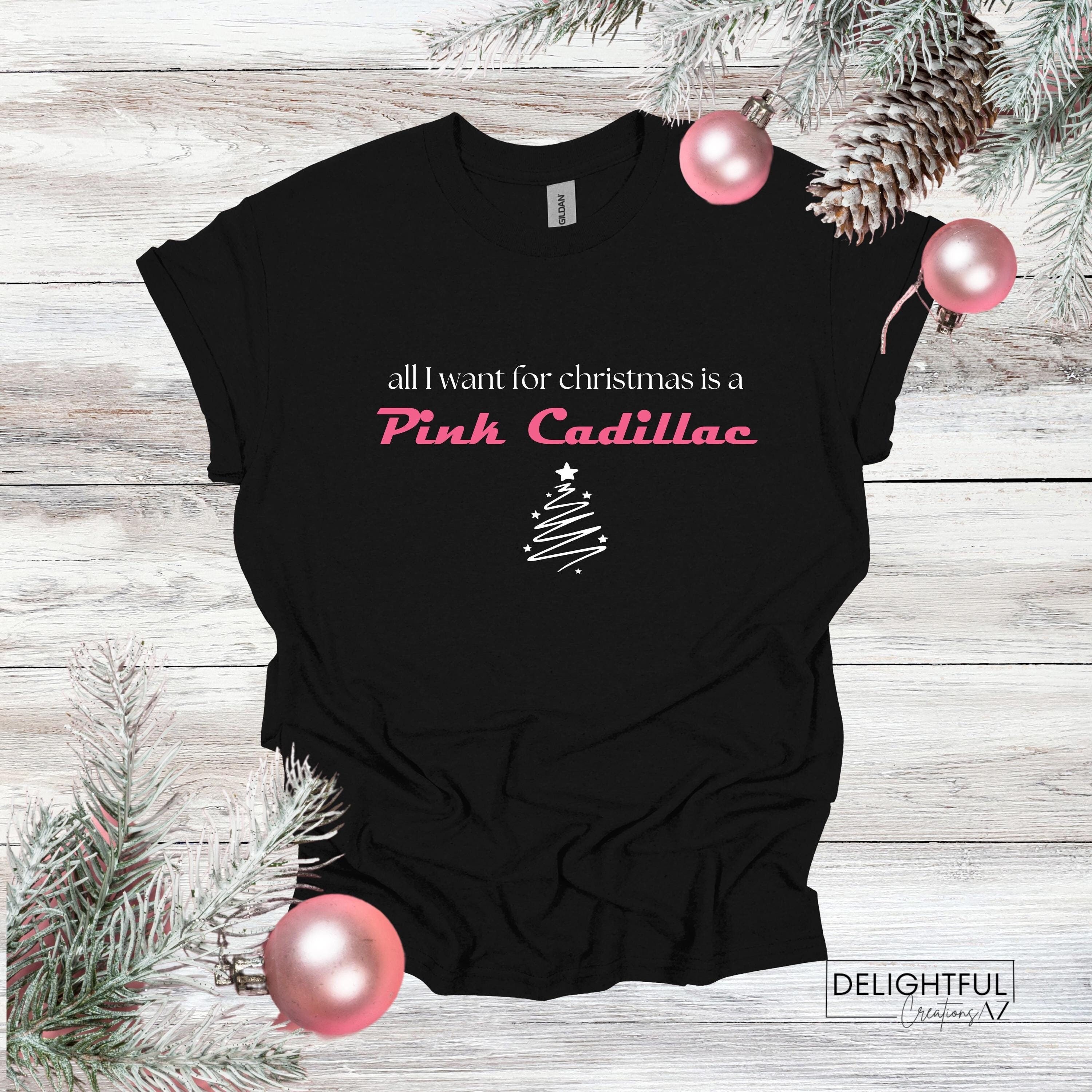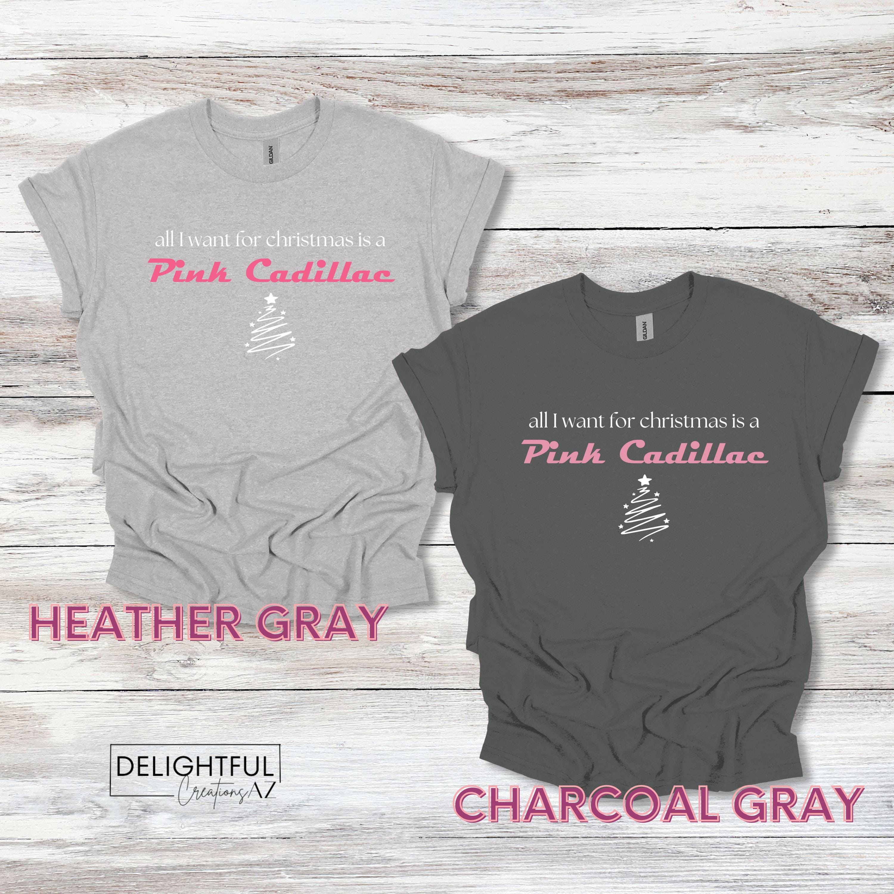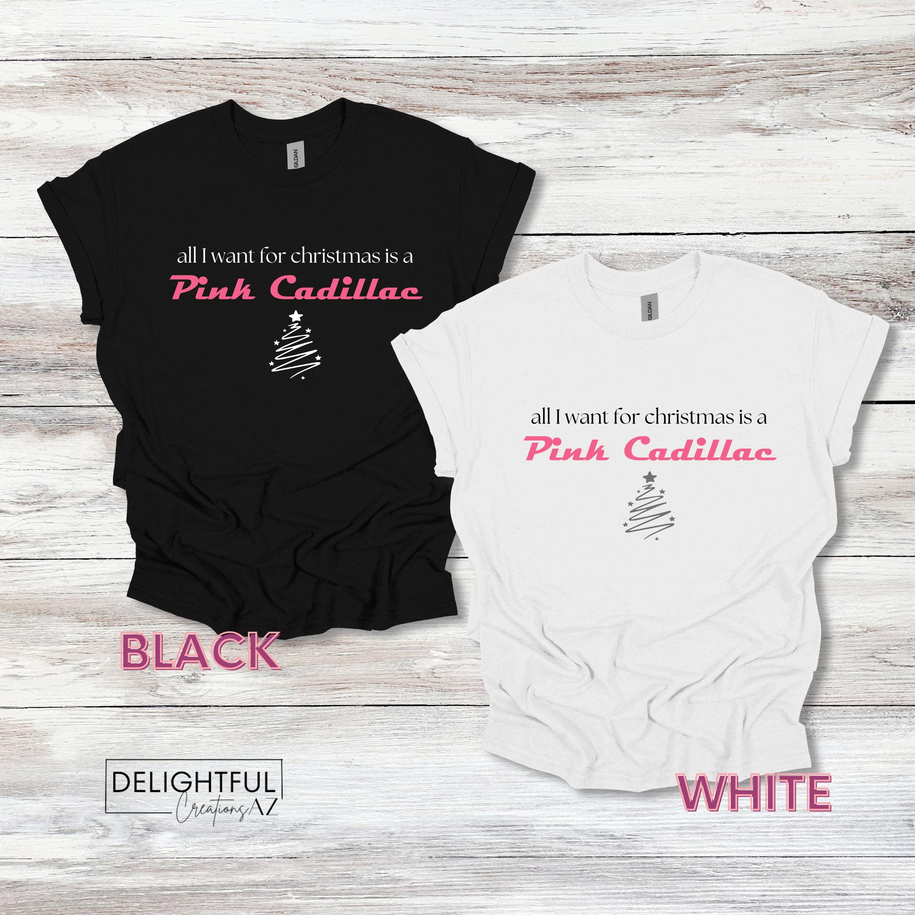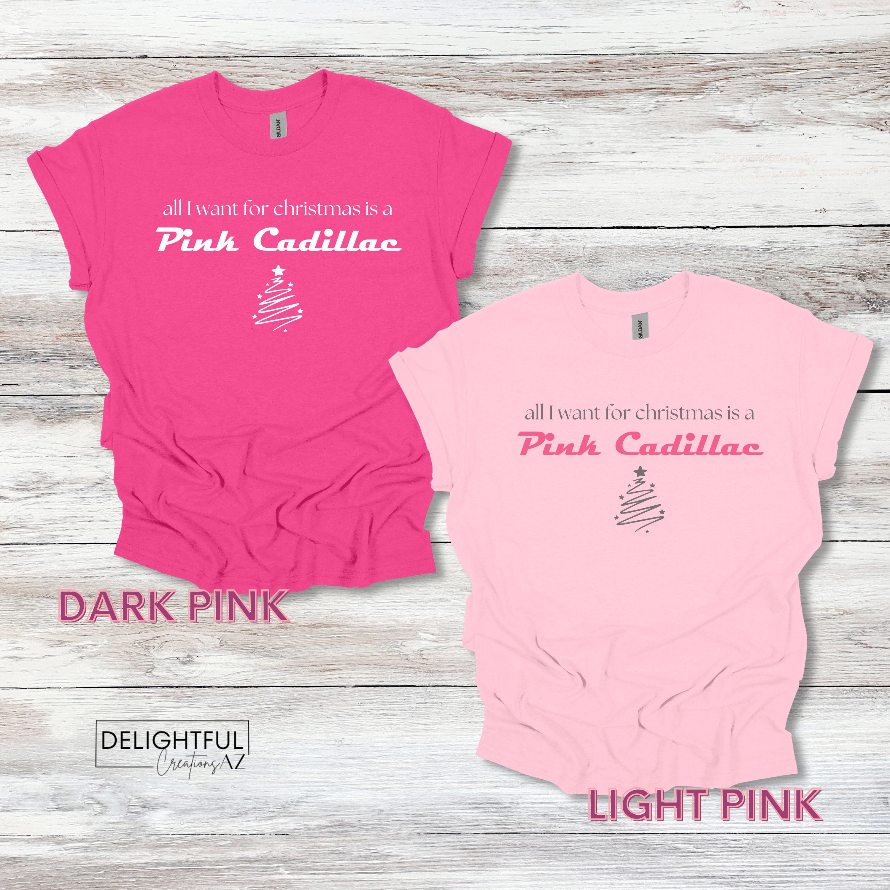 - When ordering, choose your shirt color and whether or not you'd like a little sparkle with glitter vinyl. If choosing the glitter option, only the words "Pink Cadillac" with be in glitter vinyl, the rest of the design will be in standard vinyl.