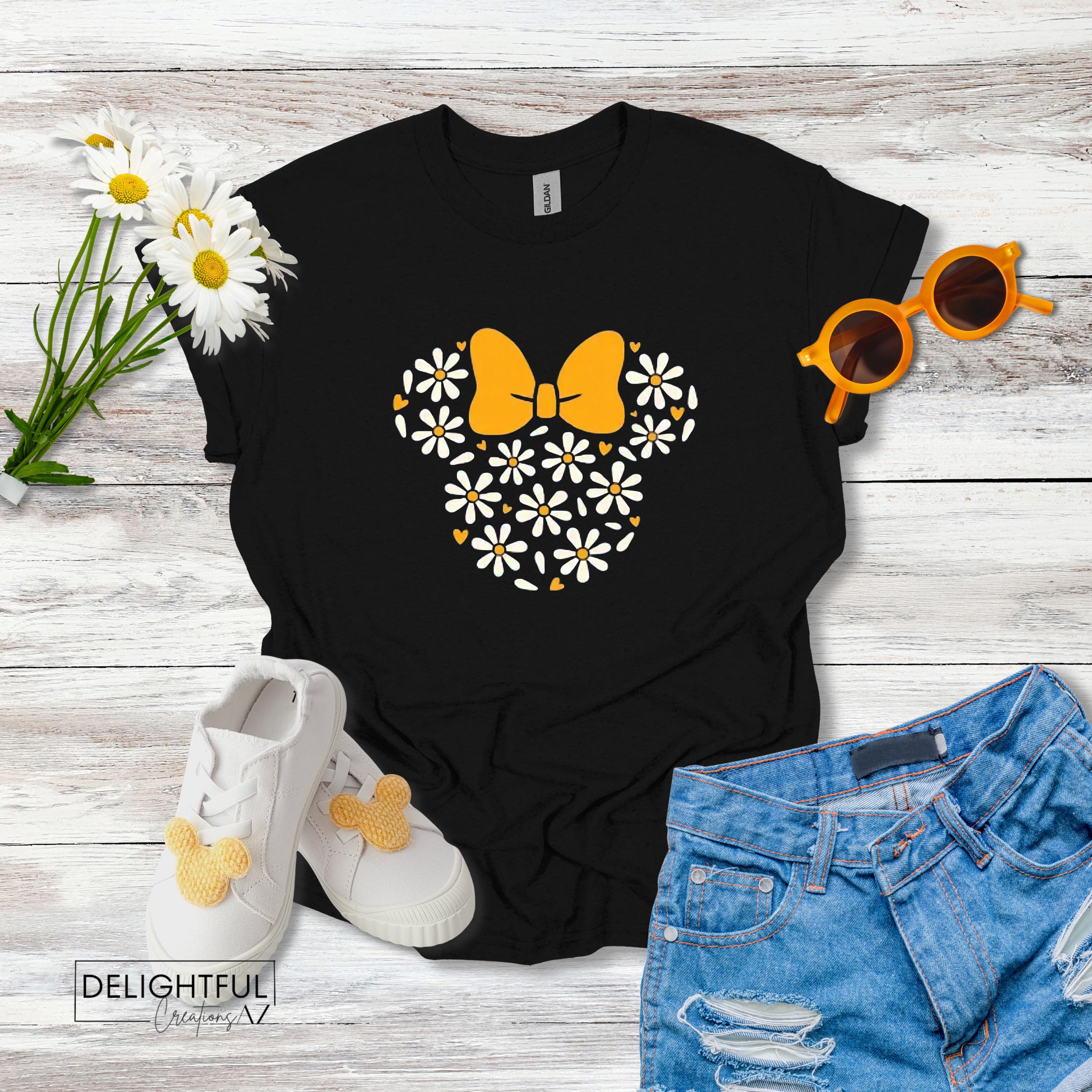 Get ready for fun and adventure with this adorable Minnie Mouse t-shirt! Perfect for kids and adults alike, this delightful tee features Minnie Mouse with a cute bow and surrounded by colorful daisies and hearts. This t-shirt is a must-have for Disney fans who love to show off their playful style. Explore more designs at www.delightfulcreationsaz.com