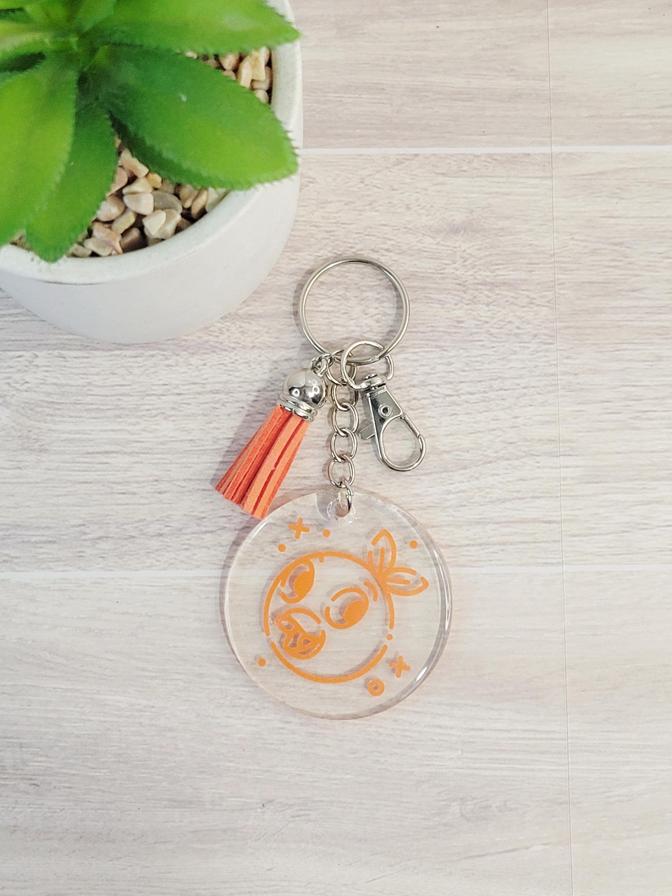 ✔ Each keychain features a tassel, a 2-inch acrylic disc, and a silver-toned chain.