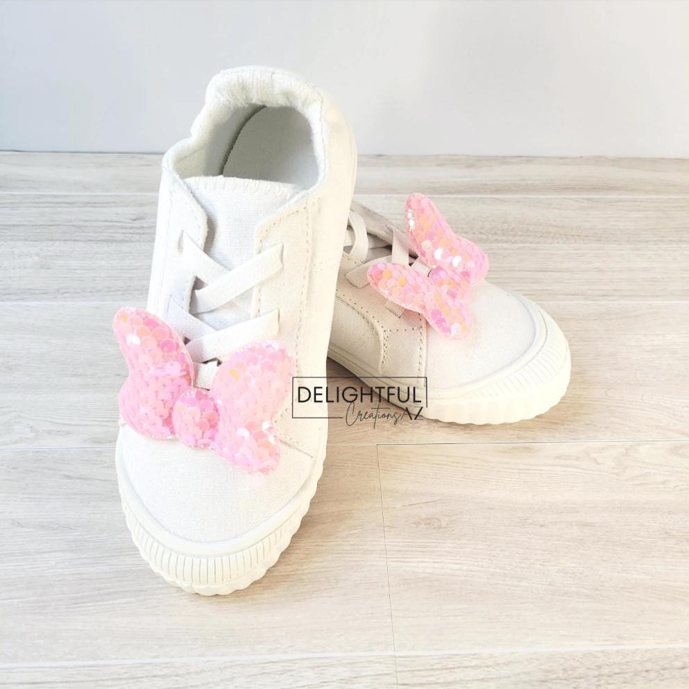Baby Pink Iridescent Sequin Mouse Bow Shoe Clips