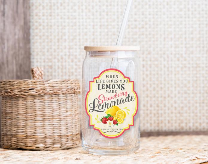 Our "When Life Gives You Lemons Make Strawberry Lemonade" glass cup is a perfect gift! Essential for all your favorite iced coffee, smoothies, and cold drinks! Perfect for sipping your favorite beverages in style. Crafted from high-quality glass, this glassware not only exudes sophistication but also offers a unique way to express yourself. Explore other glass designs at www.delightfulcreationsaz.com