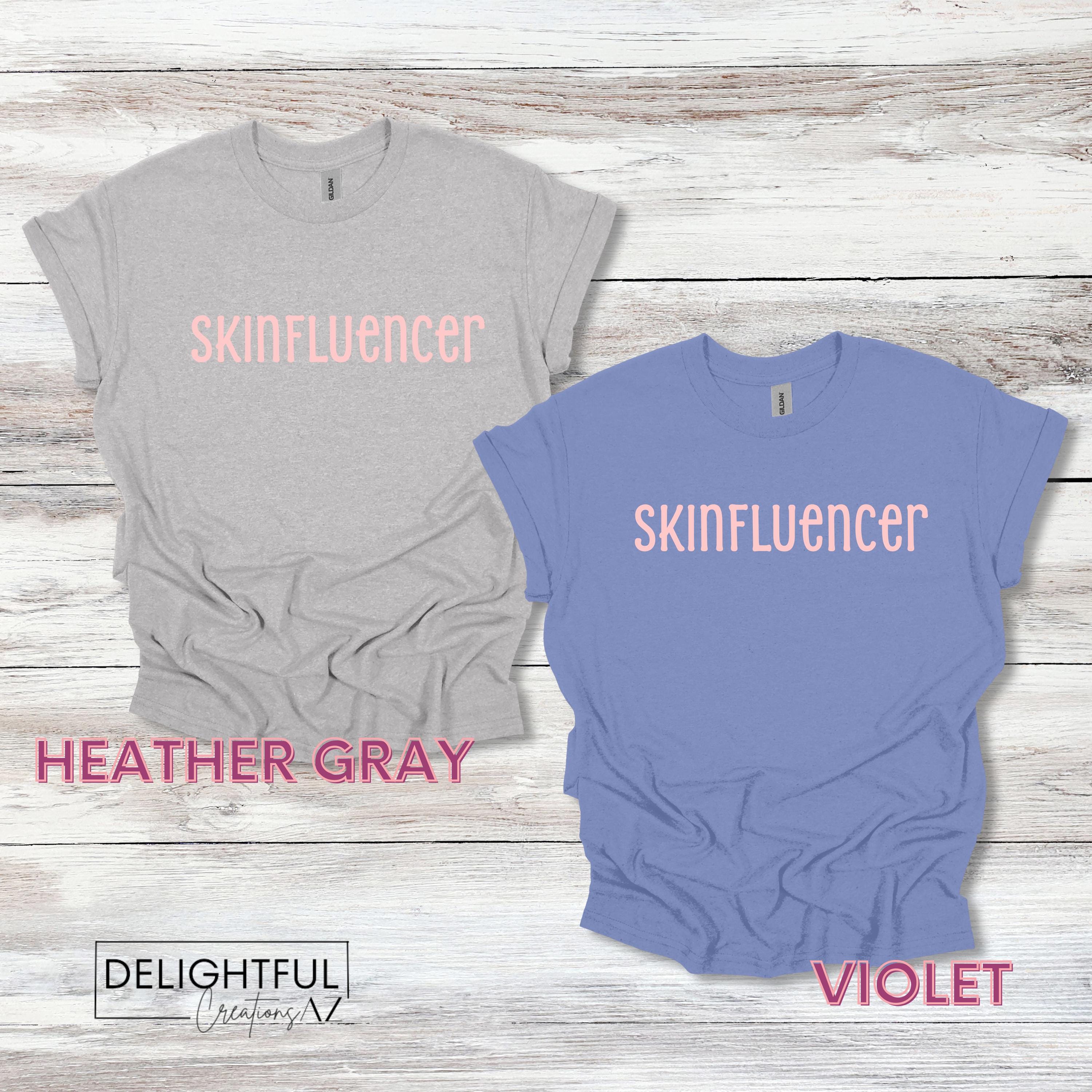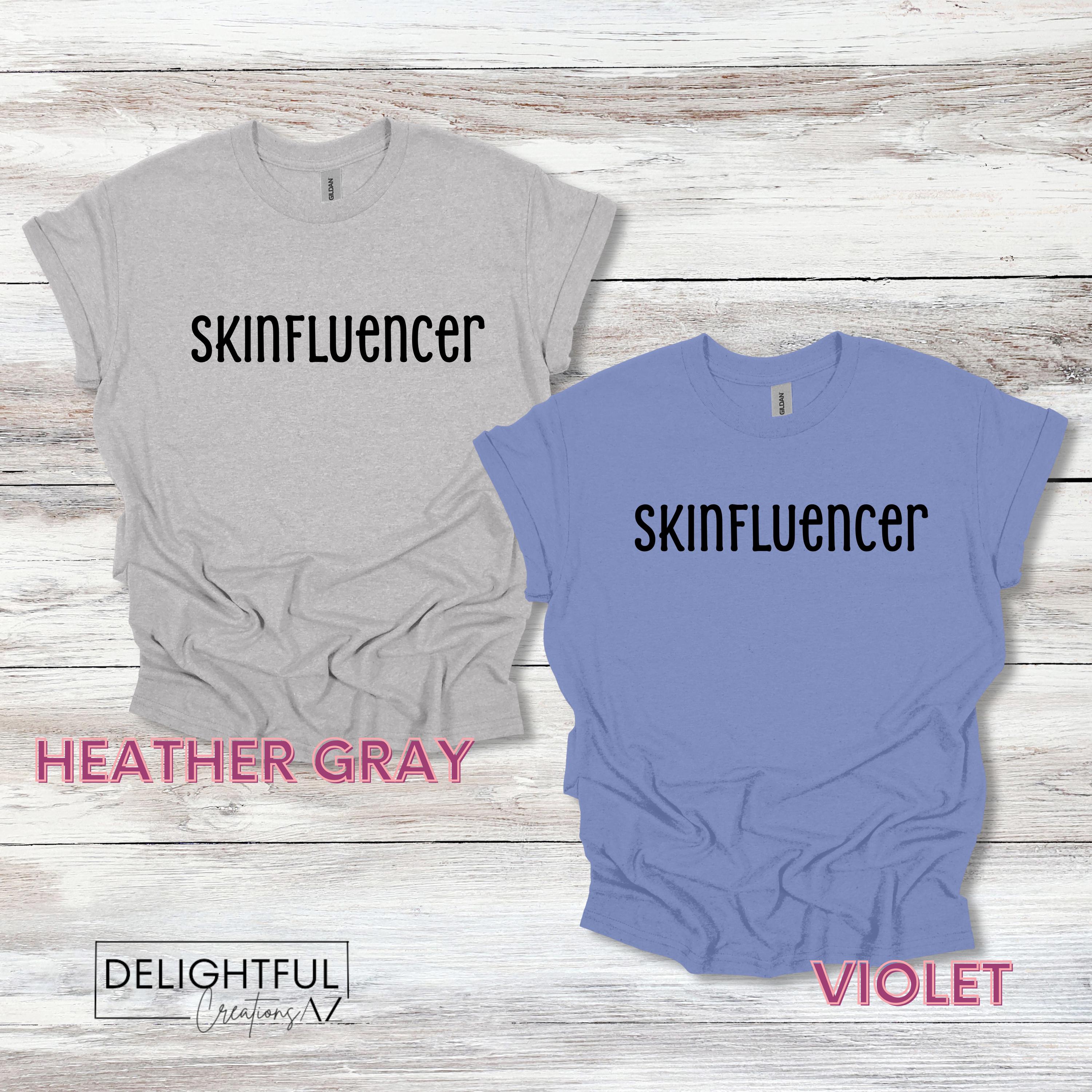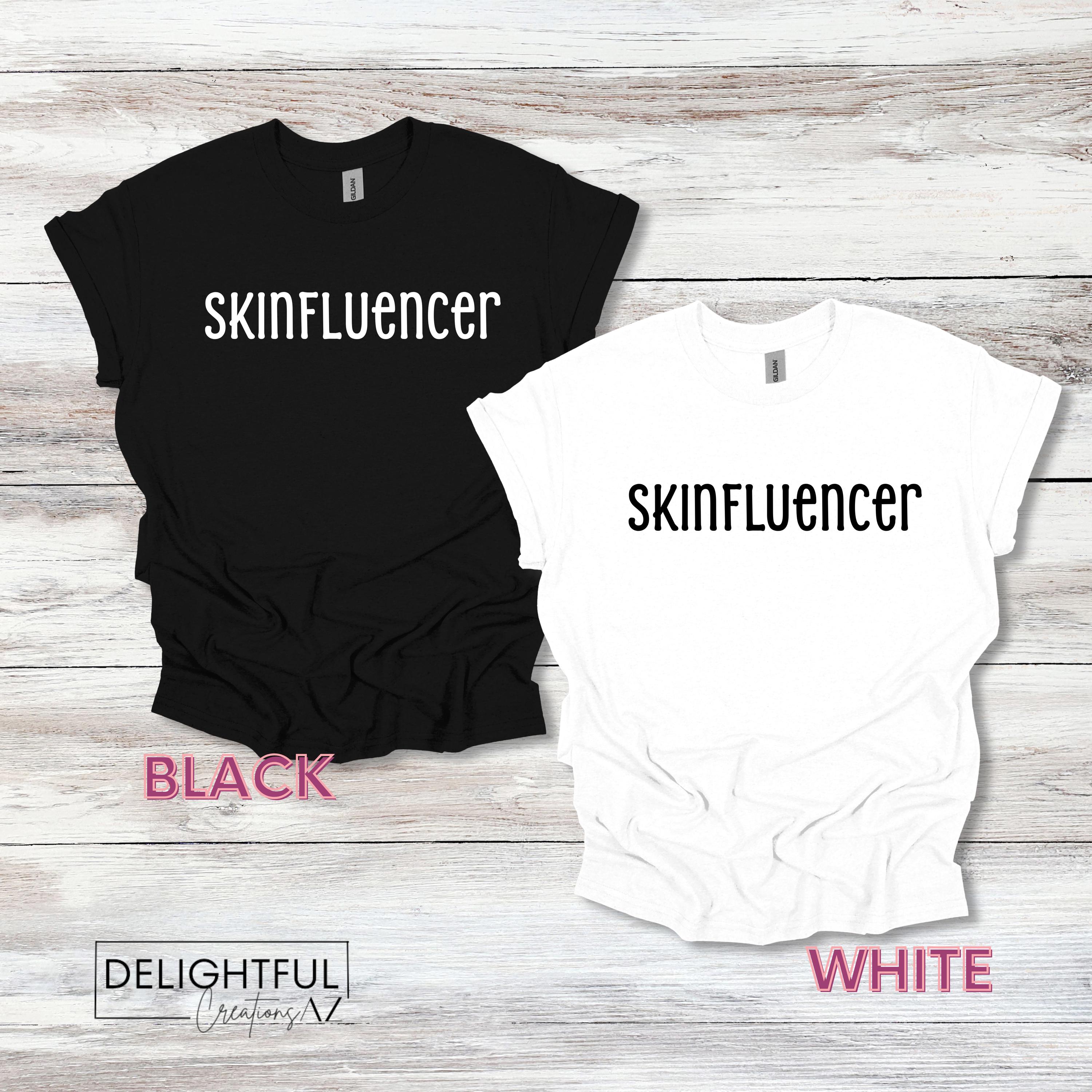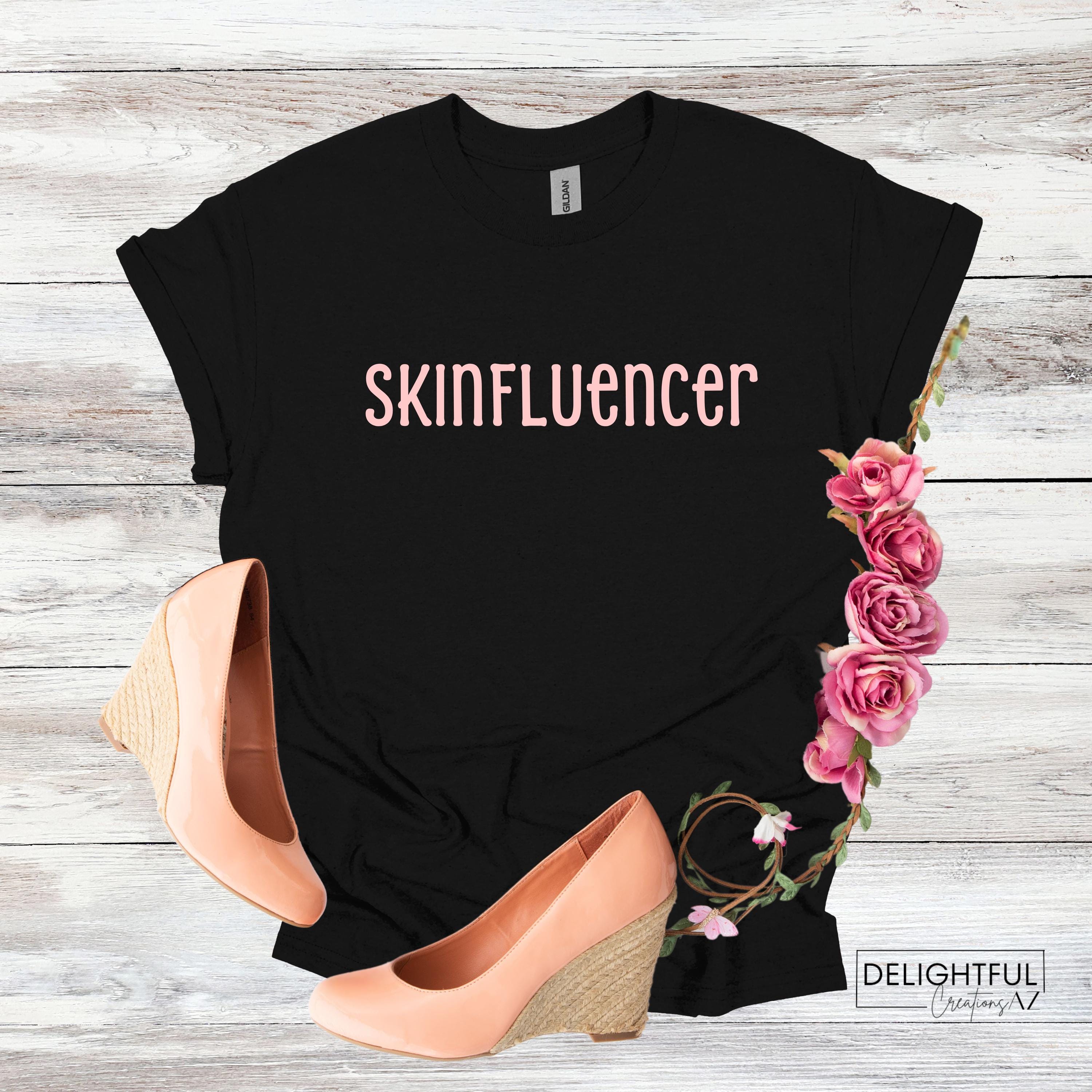 The "Skinfluencer" T-shirt is perfect for skincare enthusiasts! This stylish tee features a fun design with "Skinfluencer" lettering.