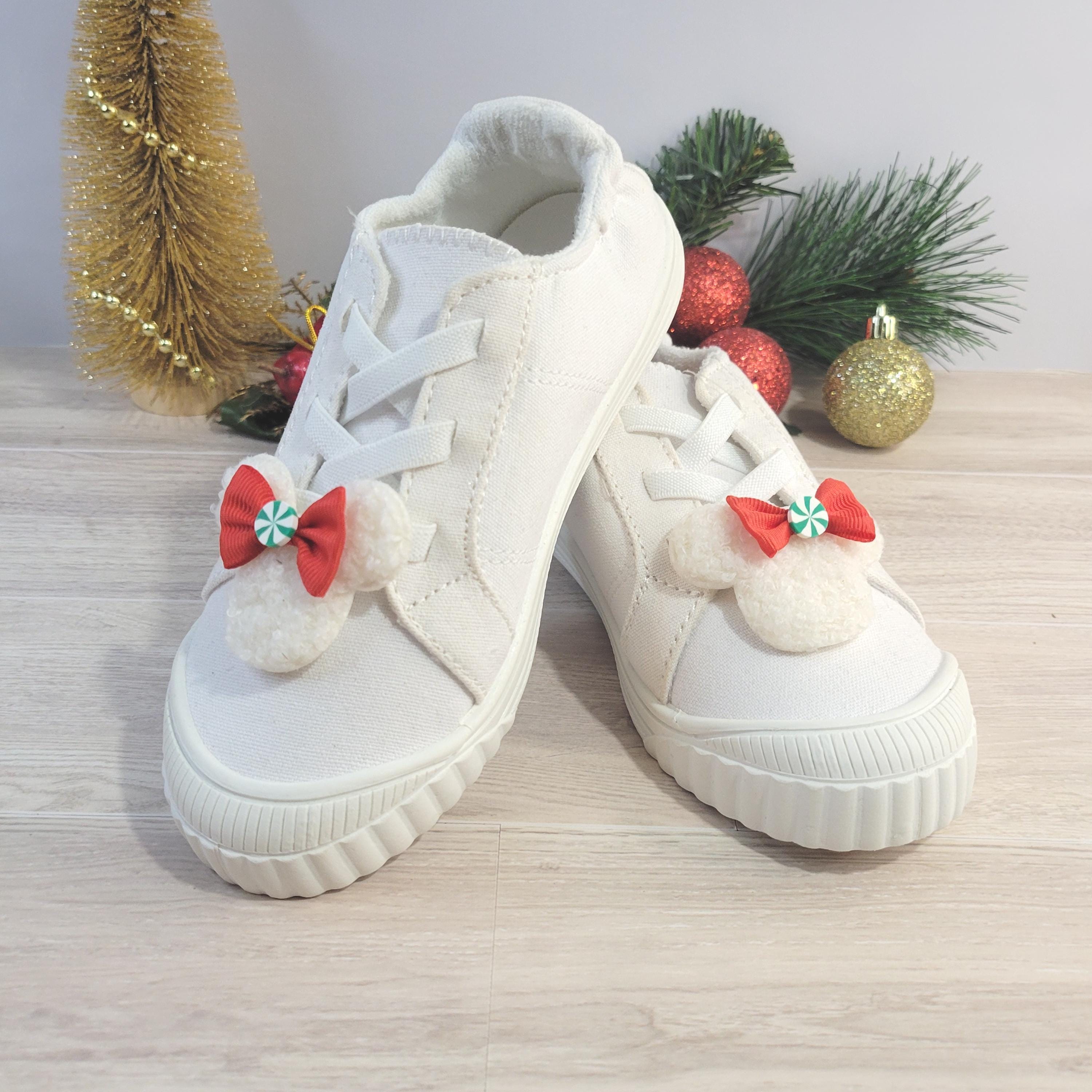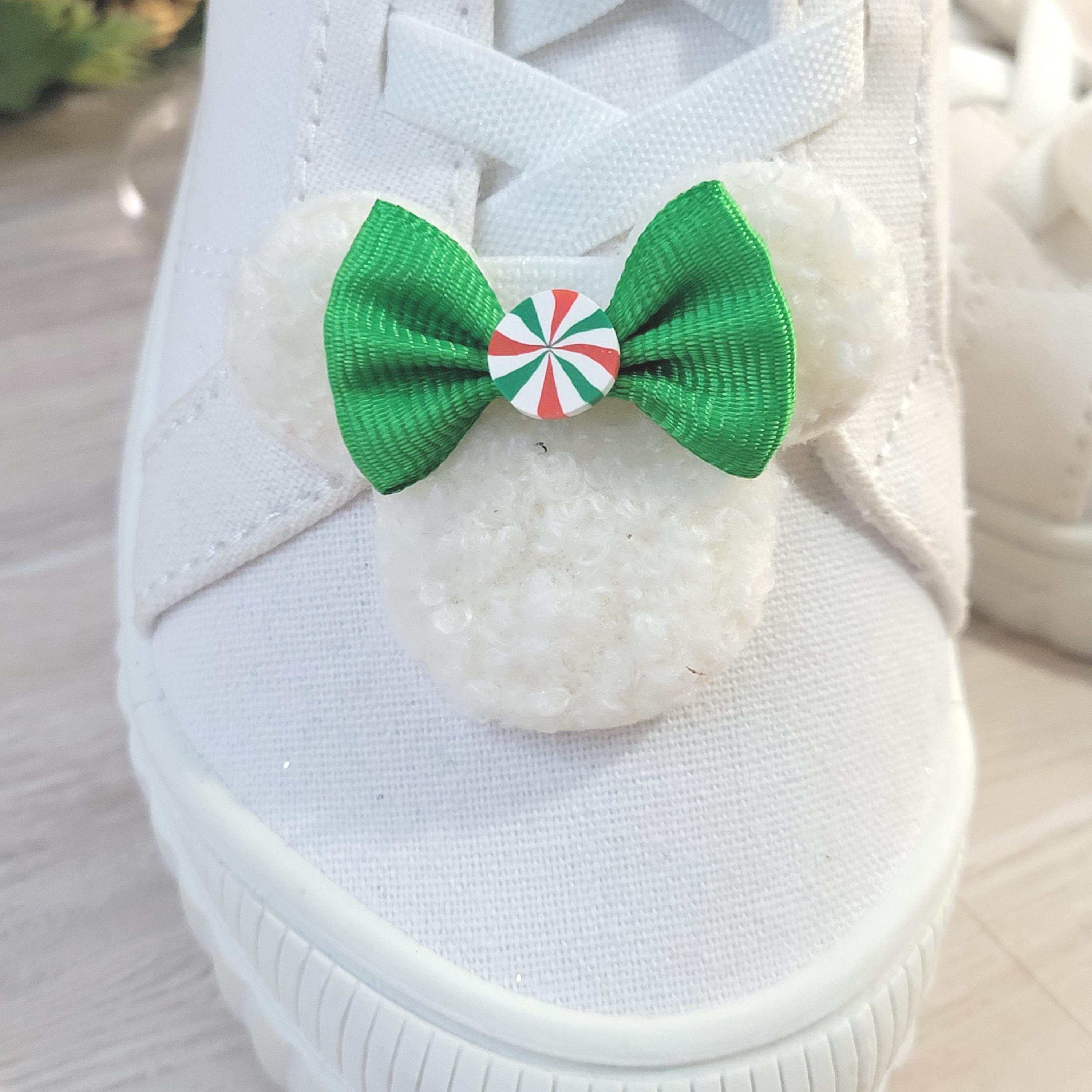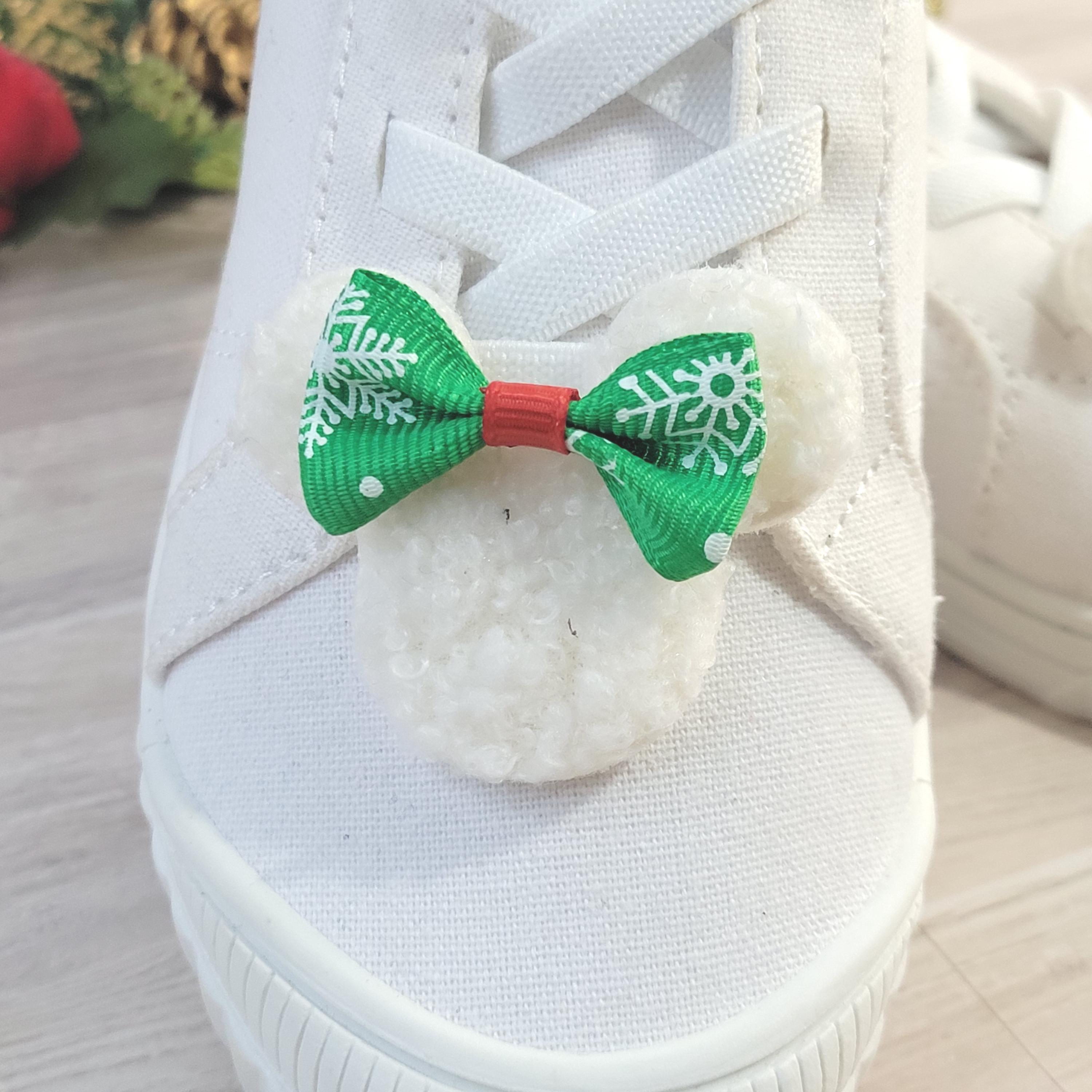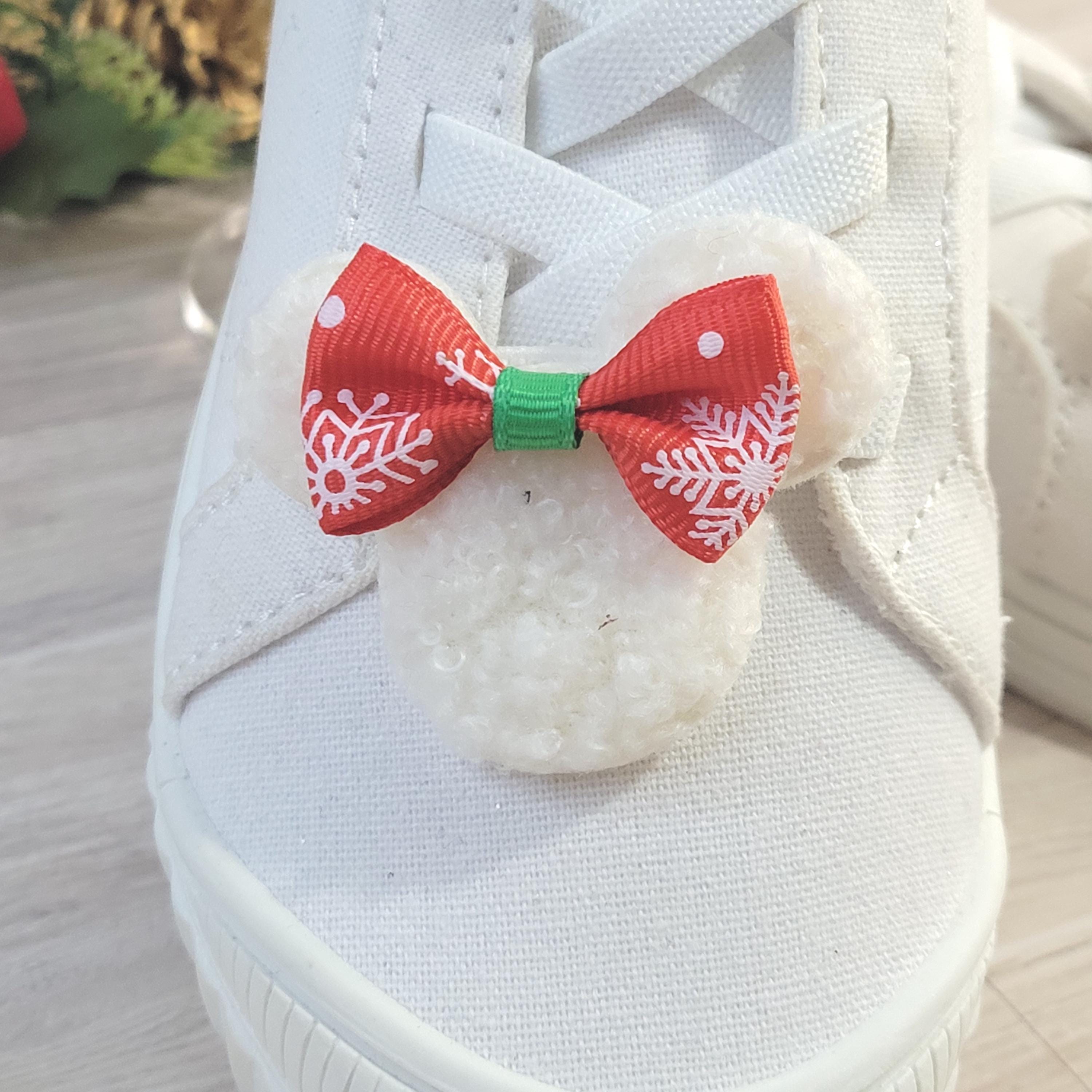 Add a touch of holiday cheer to your kicks with these festive white Mickey-inspired shoe clips! Each clip features plush mouse ears topped with a your choice of festive bow—perfect for park strolls, holiday parties, or just spreading seasonal joy wherever you go. Handmade with love and securely fastened to metal clips, they’re a whimsical way to dress up your sneakers with Disney charm. Limited quantities available, so grab your pair before they dash away like reindeer on Christmas Eve!