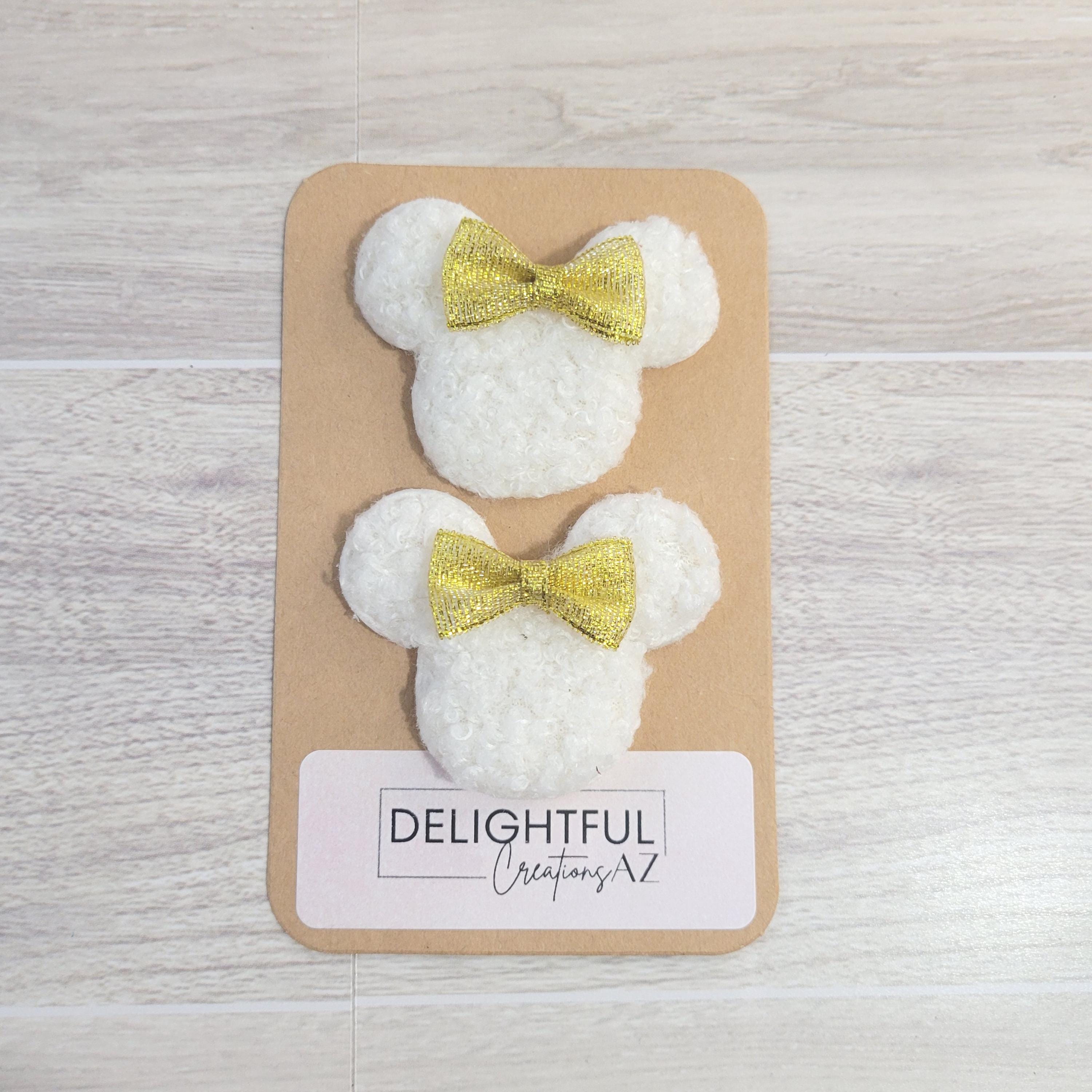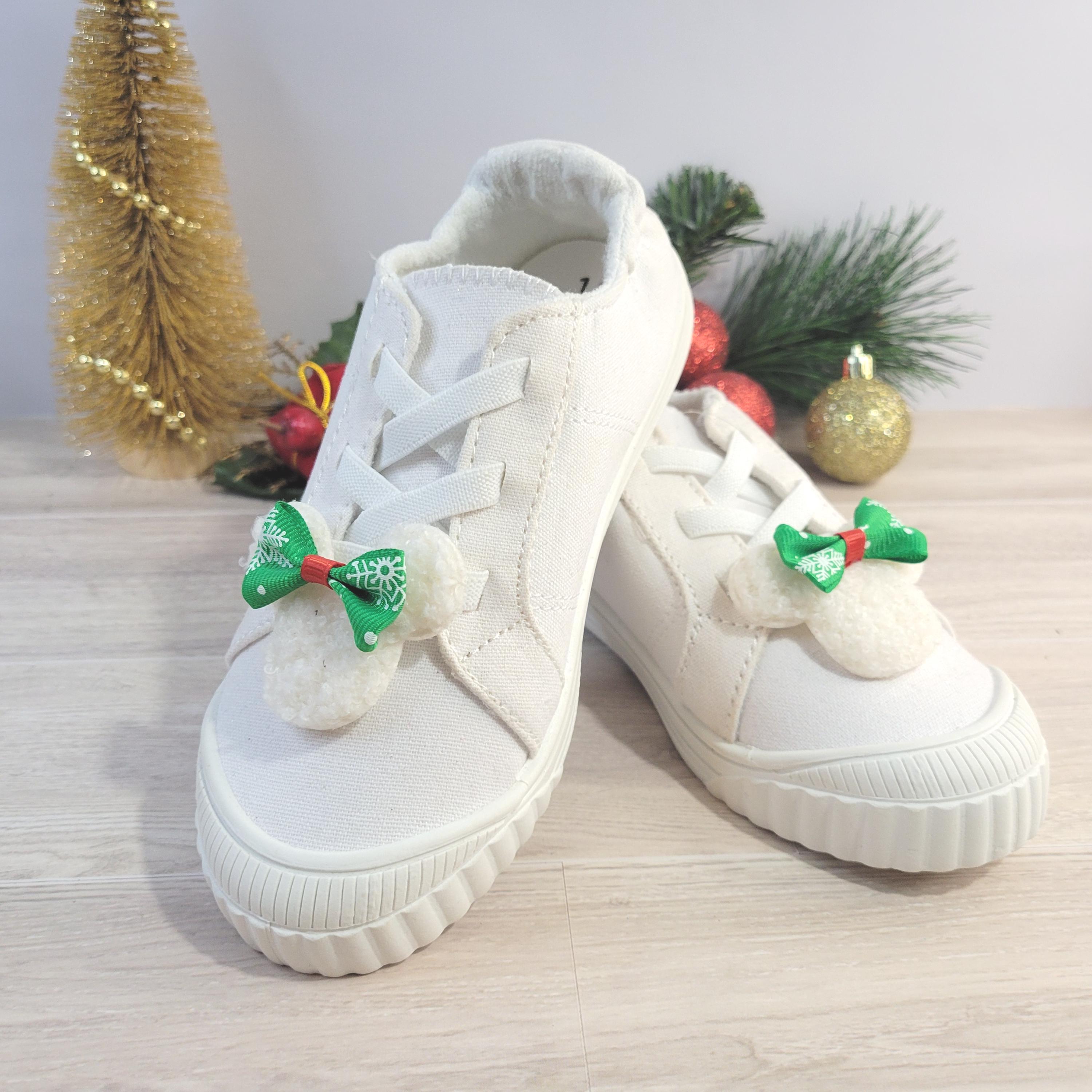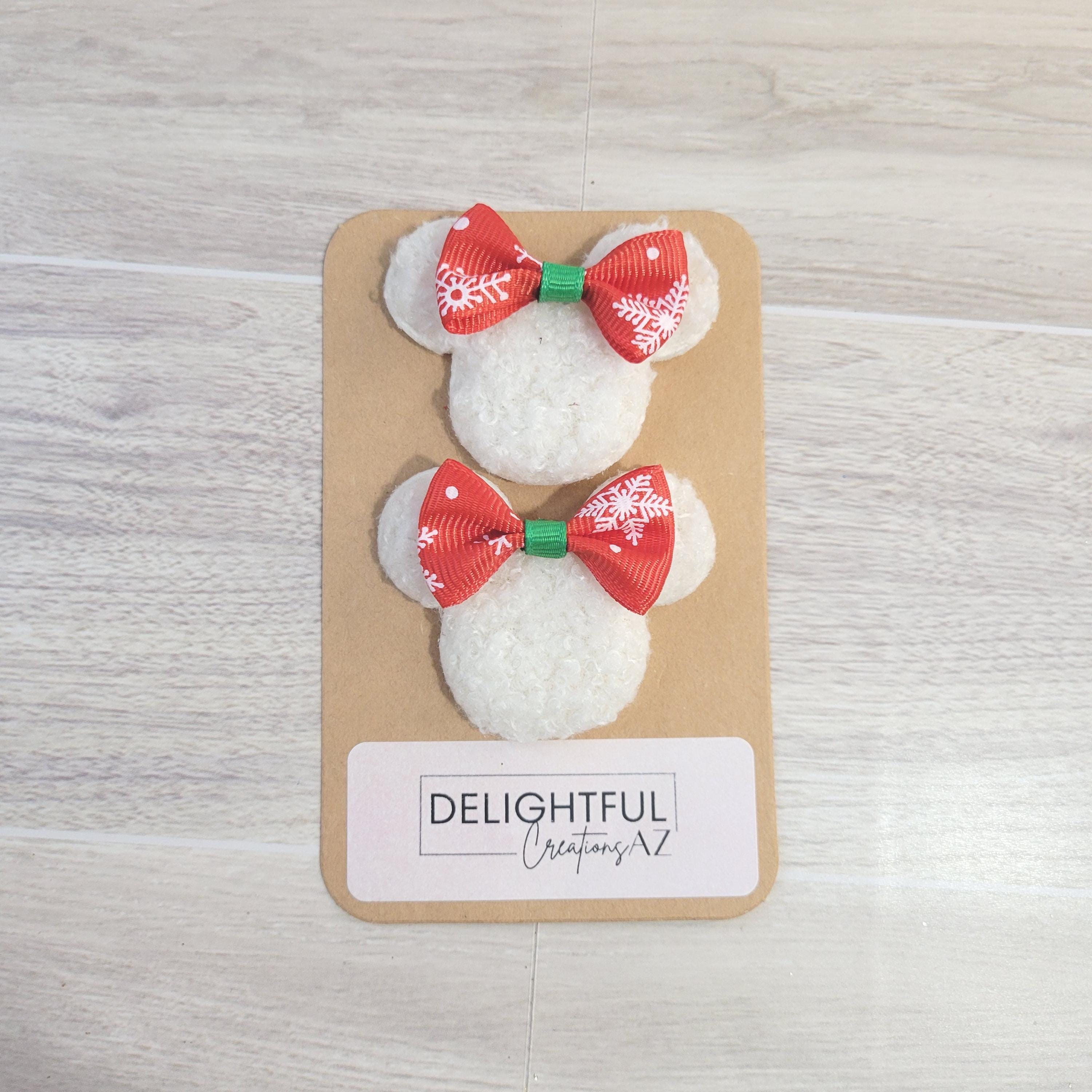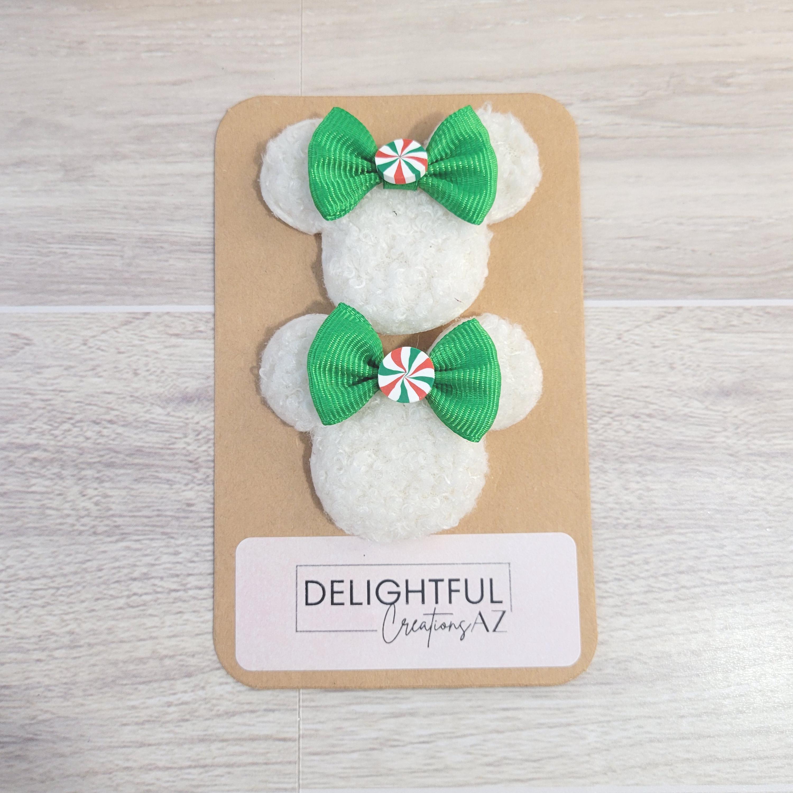 Add a touch of holiday cheer to your kicks with these festive white Mickey-inspired shoe clips! Each clip features plush mouse ears topped with a your choice of festive bow—perfect for park strolls, holiday parties, or just spreading seasonal joy wherever you go. Handmade with love and securely fastened to metal clips, they’re a whimsical way to dress up your sneakers with Disney charm. Limited quantities available, so grab your pair before they dash away like reindeer on Christmas Eve!