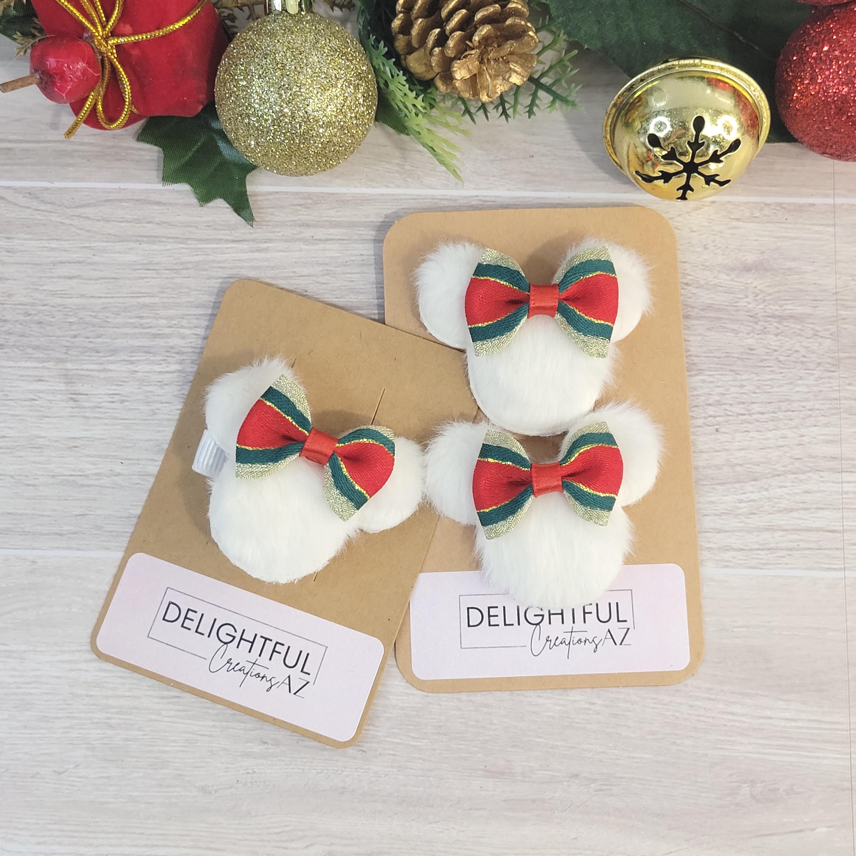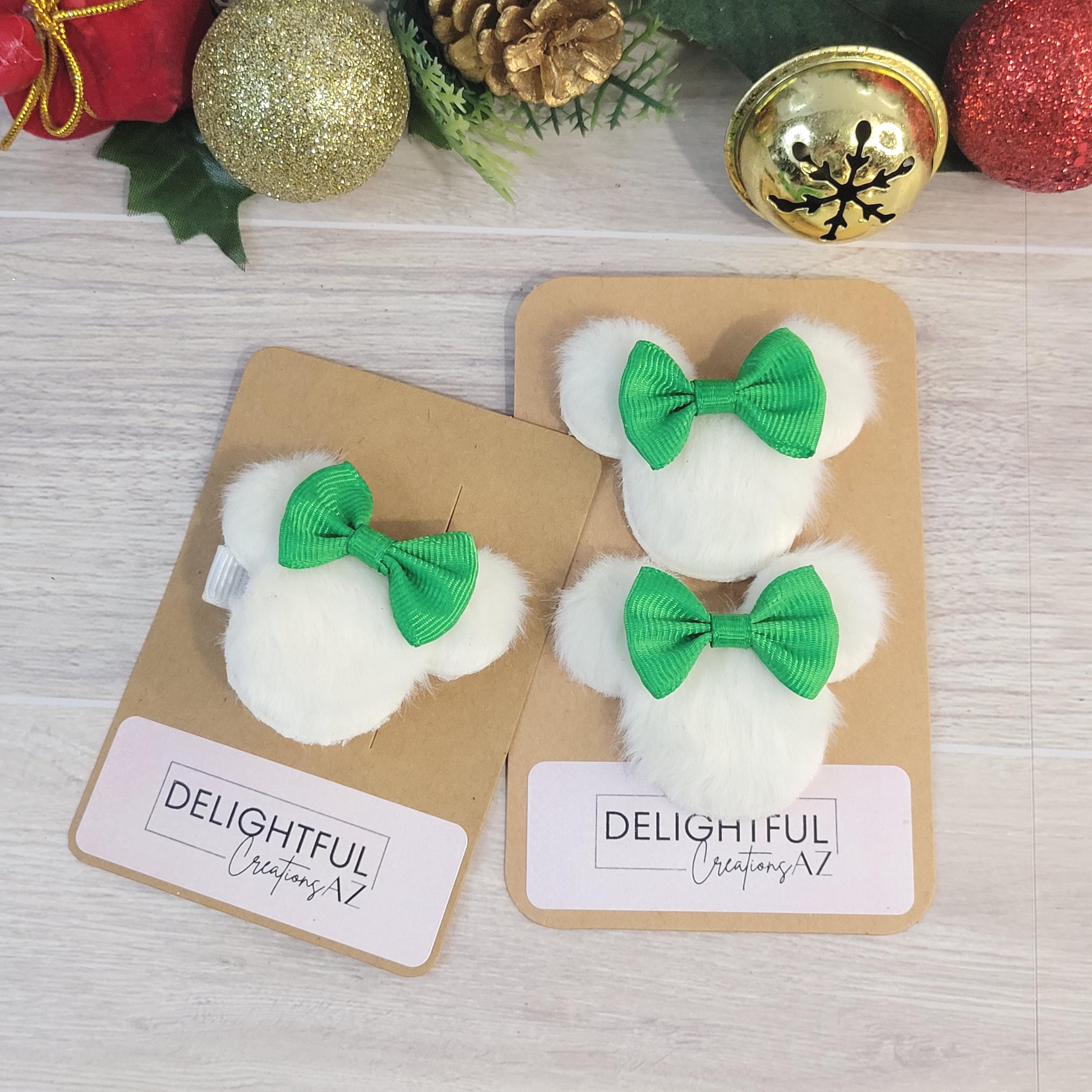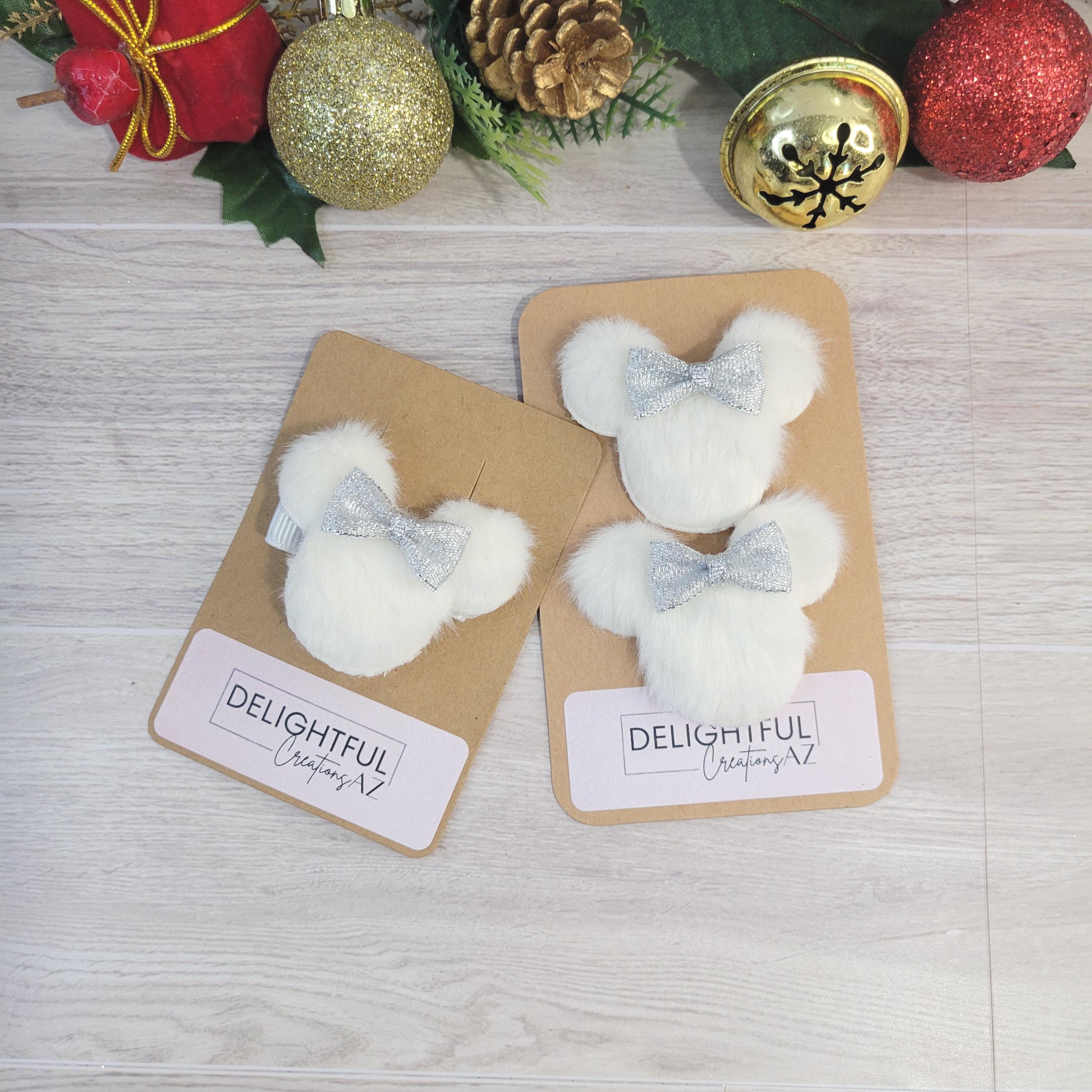 - Bundle Left → 1 left‑side hair clip (duckbill/alligator, white ribbon) + 2 matching shoe clips