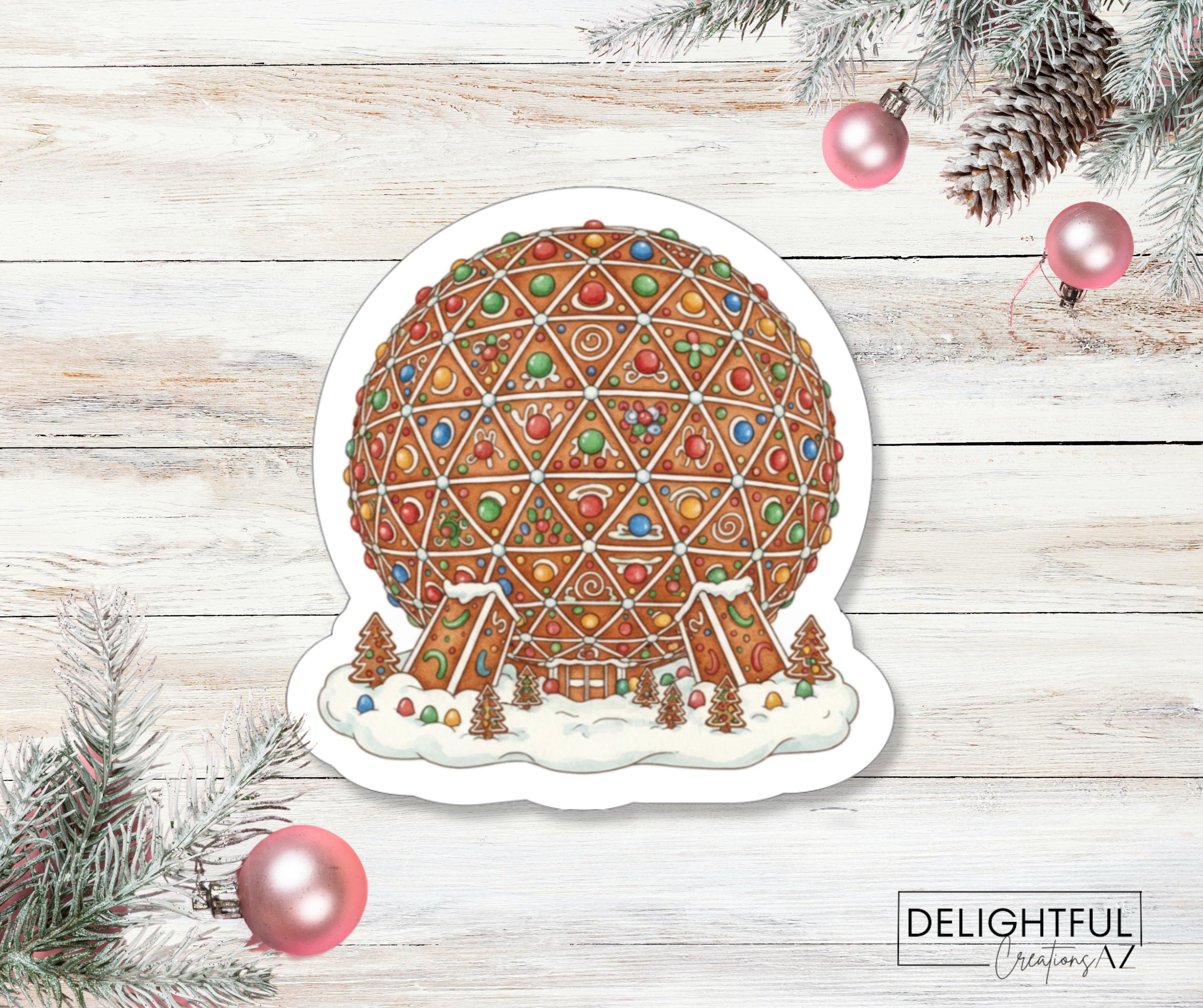 Celebrate the magic of the season with our Gingerbread Spaceship Earth stickerâa candy-coated tribute to EPCOTâs iconic geodesic dome! This cozy confection features gumdrop panels, icing swirls, and peppermint pathways, all nestled in a snowy gingerbread landscape. Itâs the perfect blend of architectural awe and holiday whimsy, ready to add a sprinkle of joy to your favorite surfaces.
