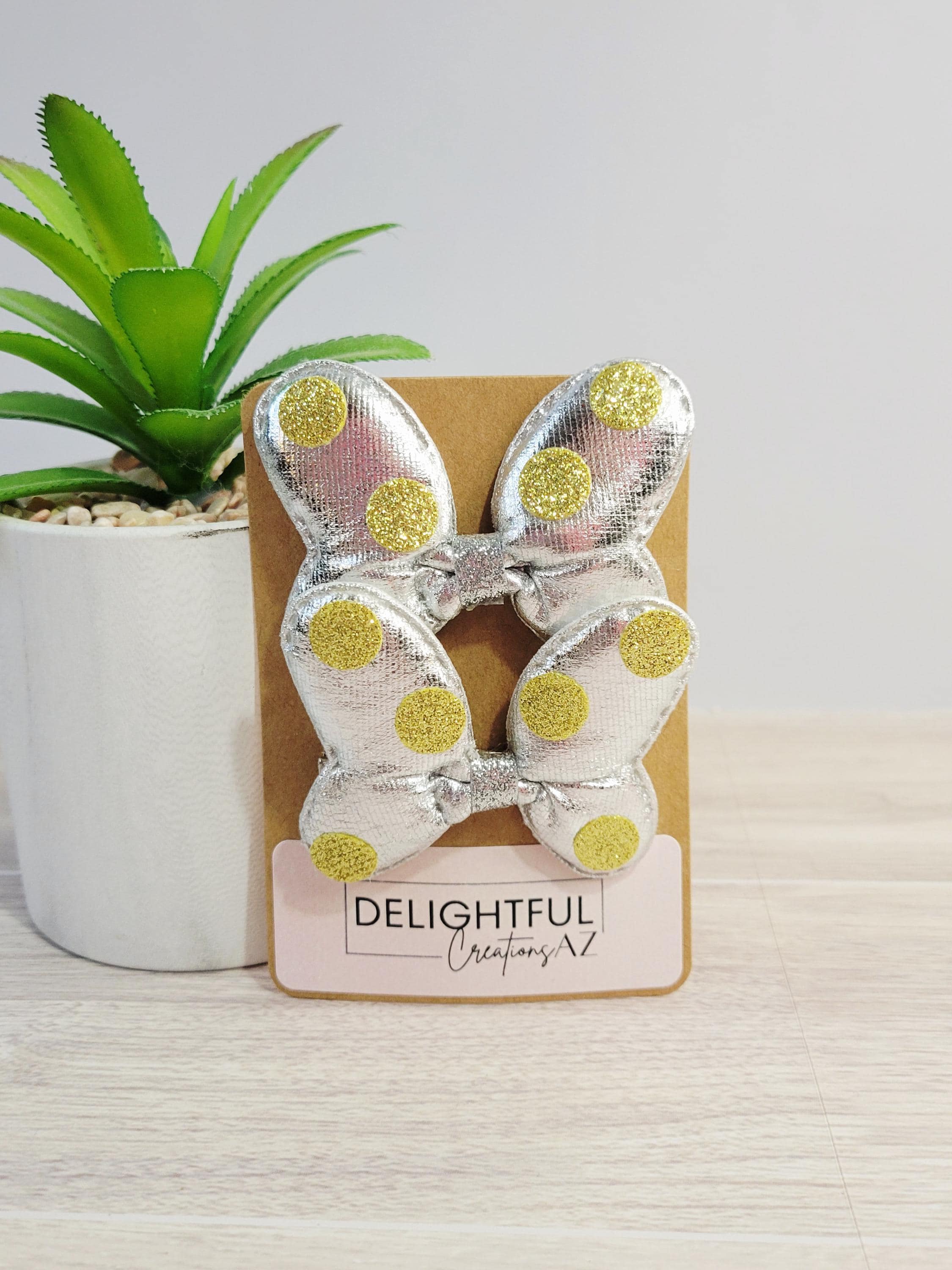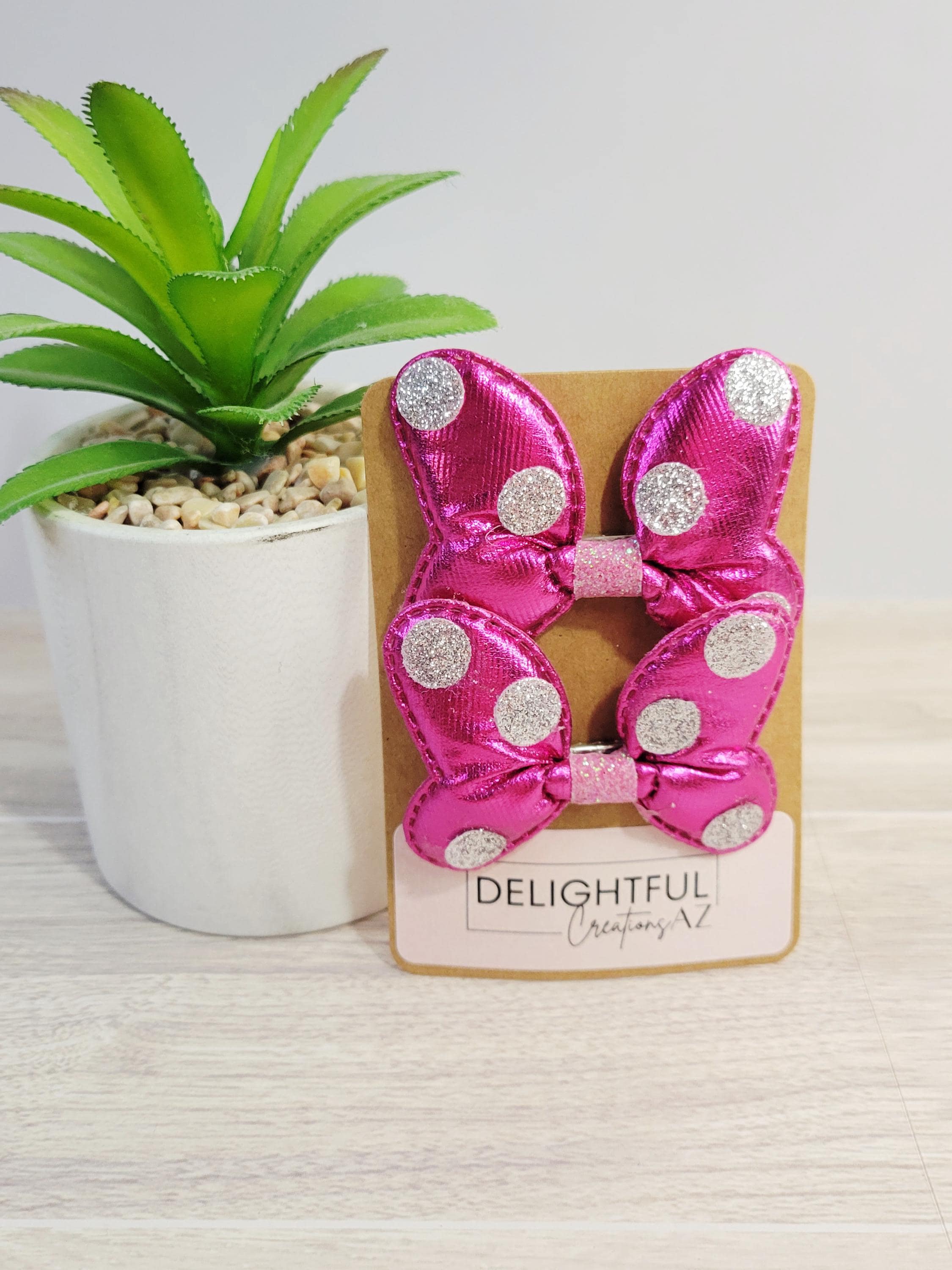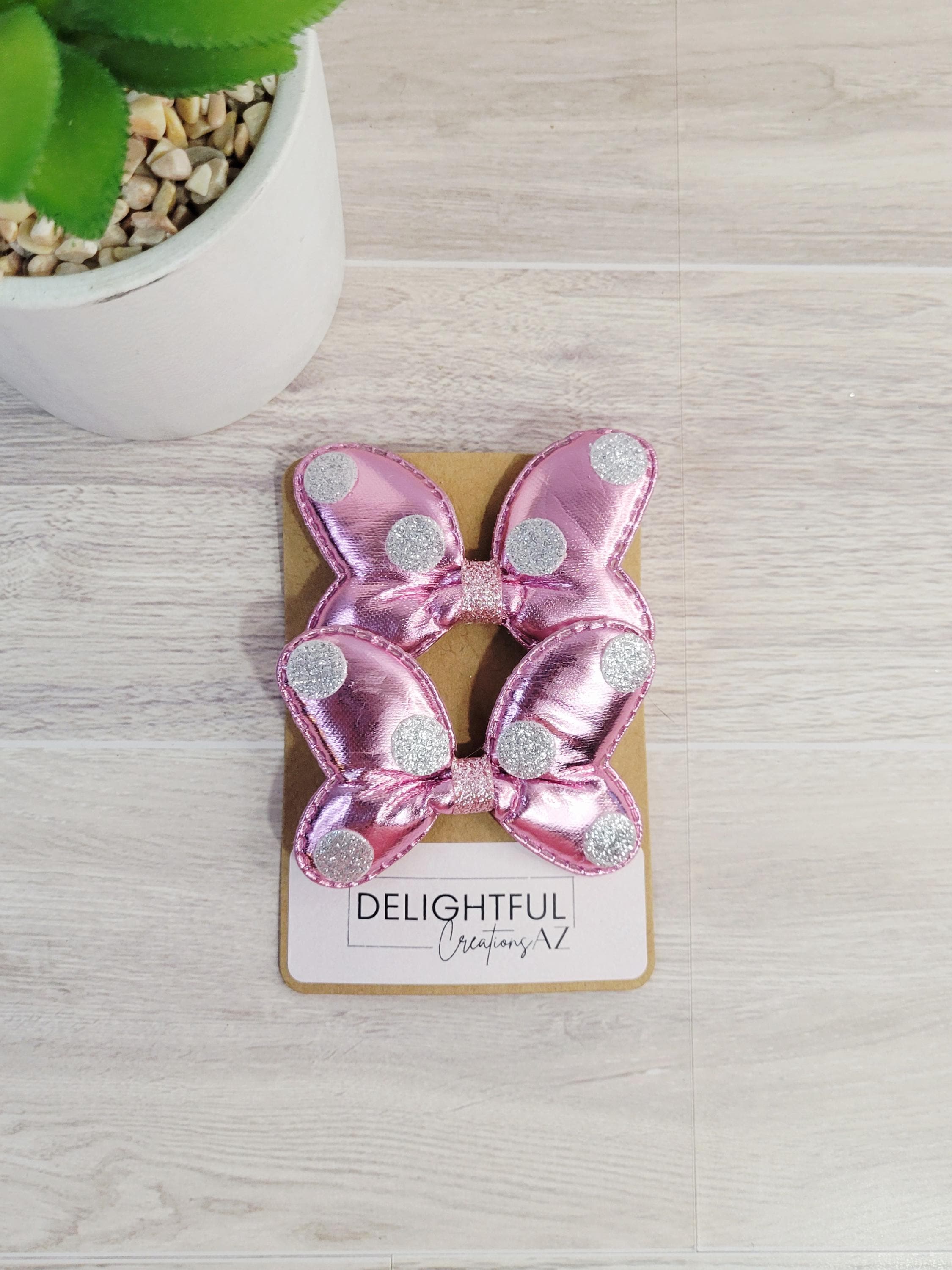 Get ready to dazzle and delight with these shimmery bow hair clips! Bursting with vibrant colors like blue, gold, red, silver, pink, and magenta! Each clip is sprinkled with playful glittery polka dots and topped off with a shimmery finish that screams “look at me!” Whether you’re jazzing up your everyday look, partying like it's your birthday, or chasing magic on a Disney adventure, these clips have you covered.