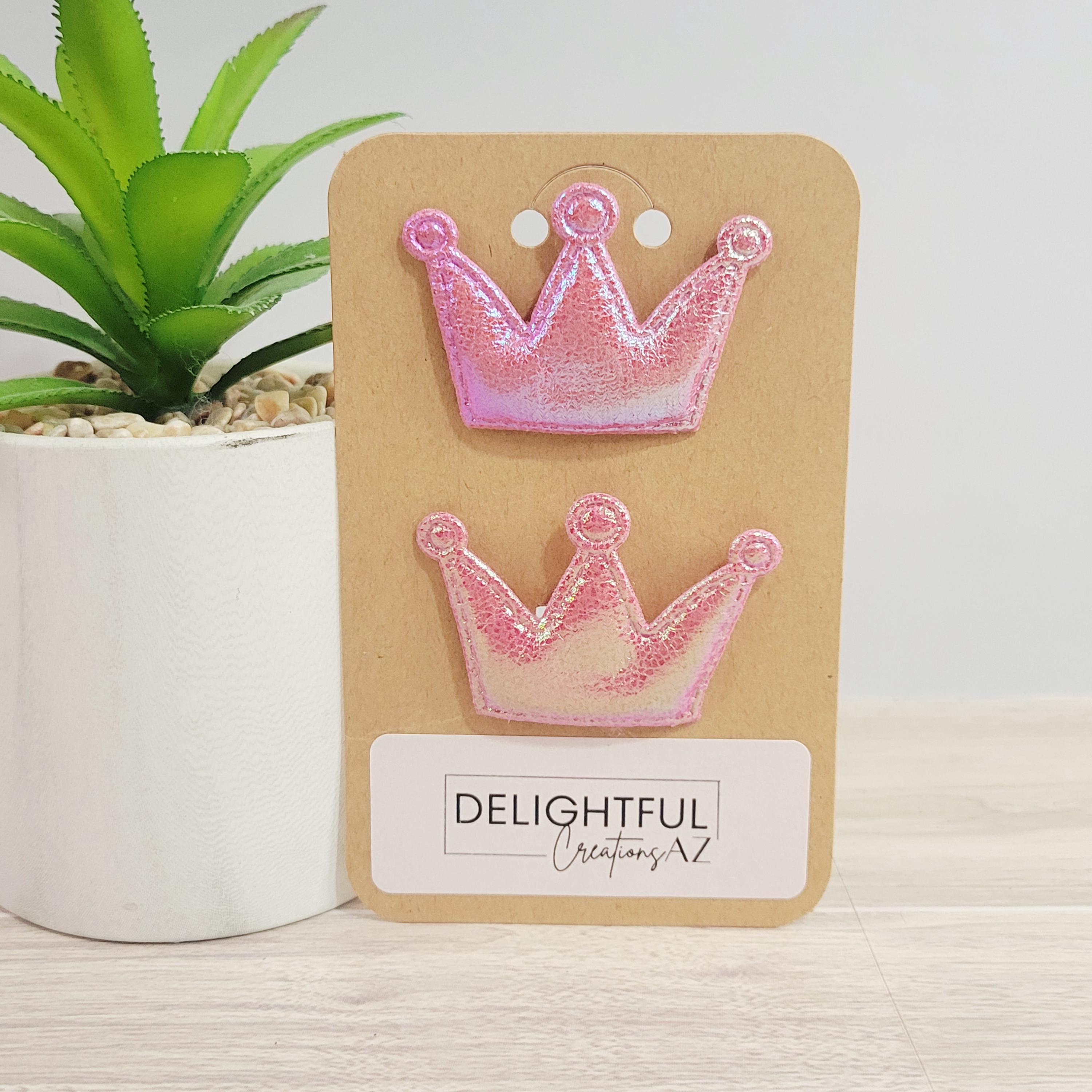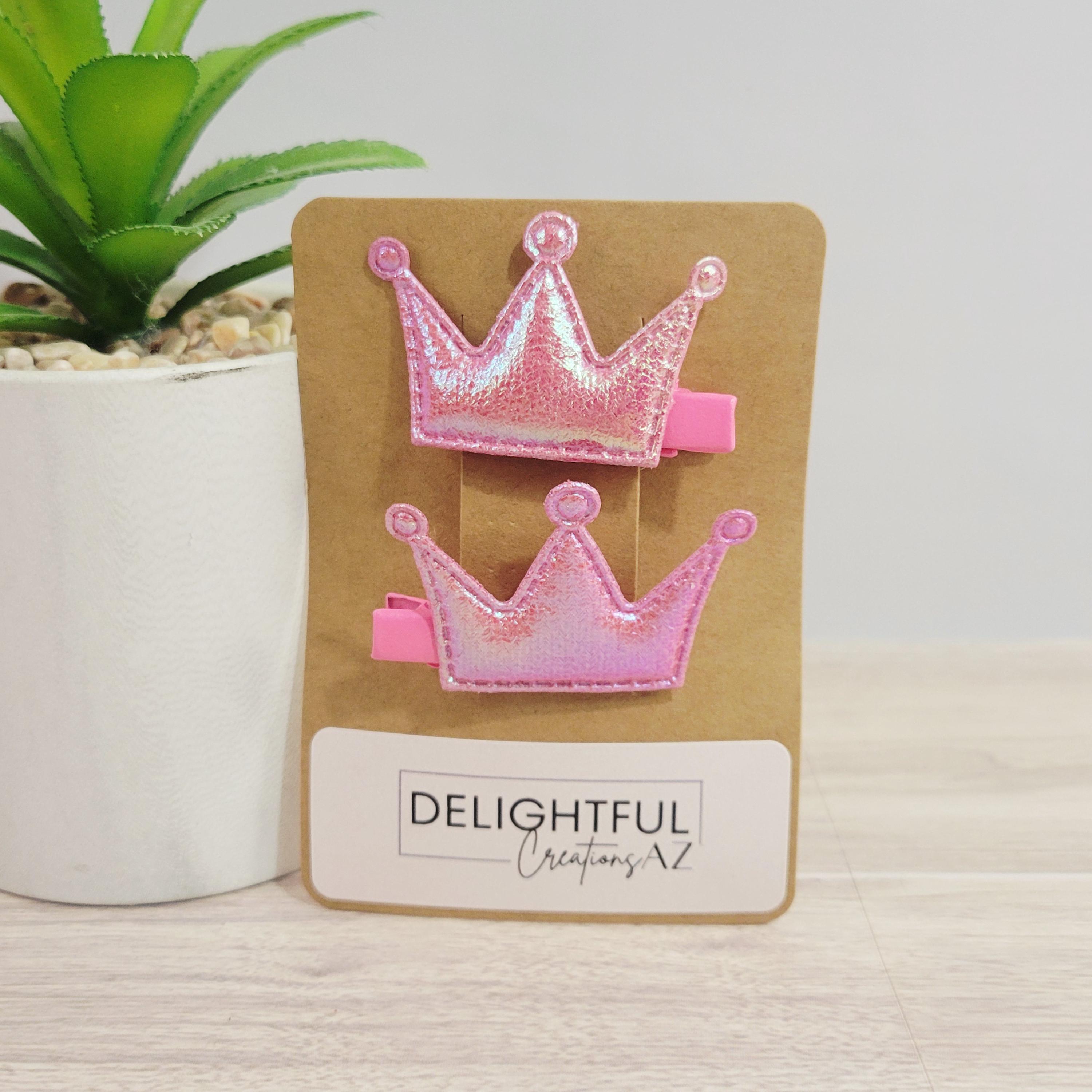 Dark Pink Iridescent Princess Crown Shoe & Hair Clips