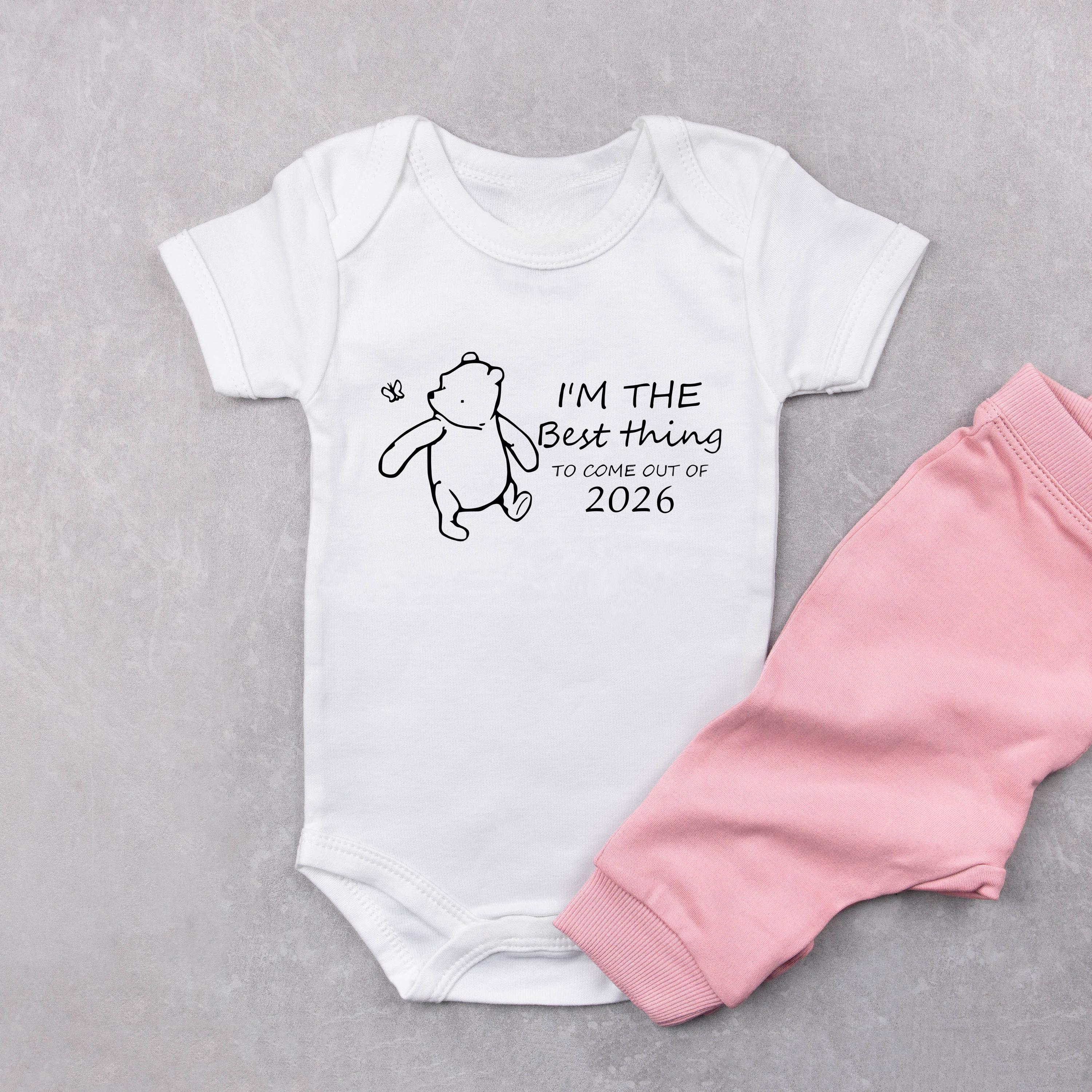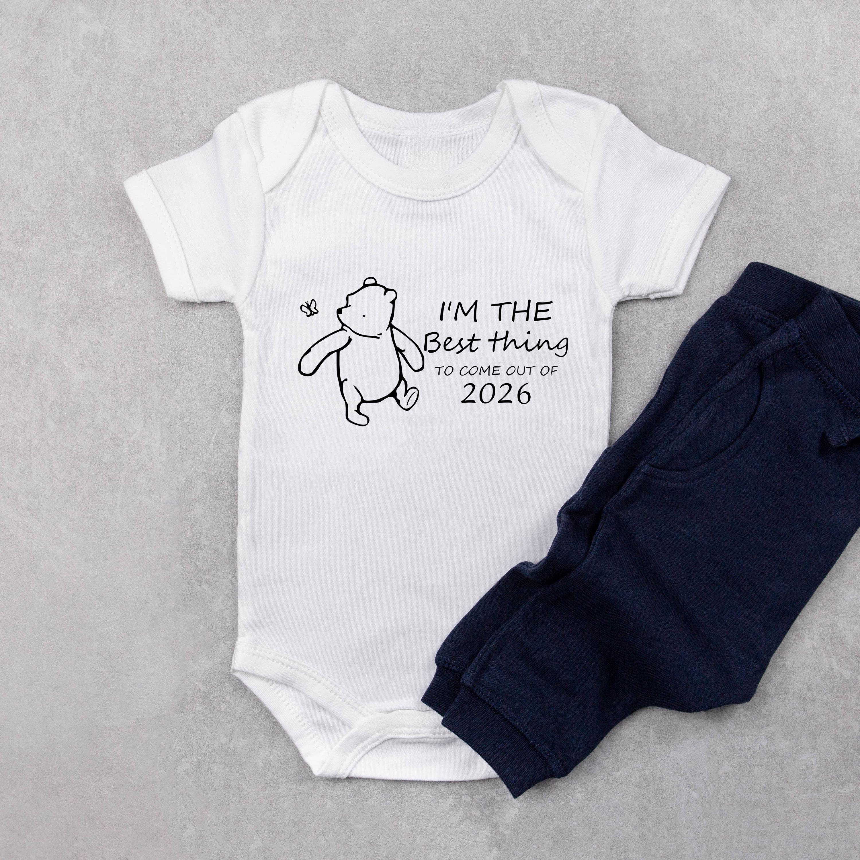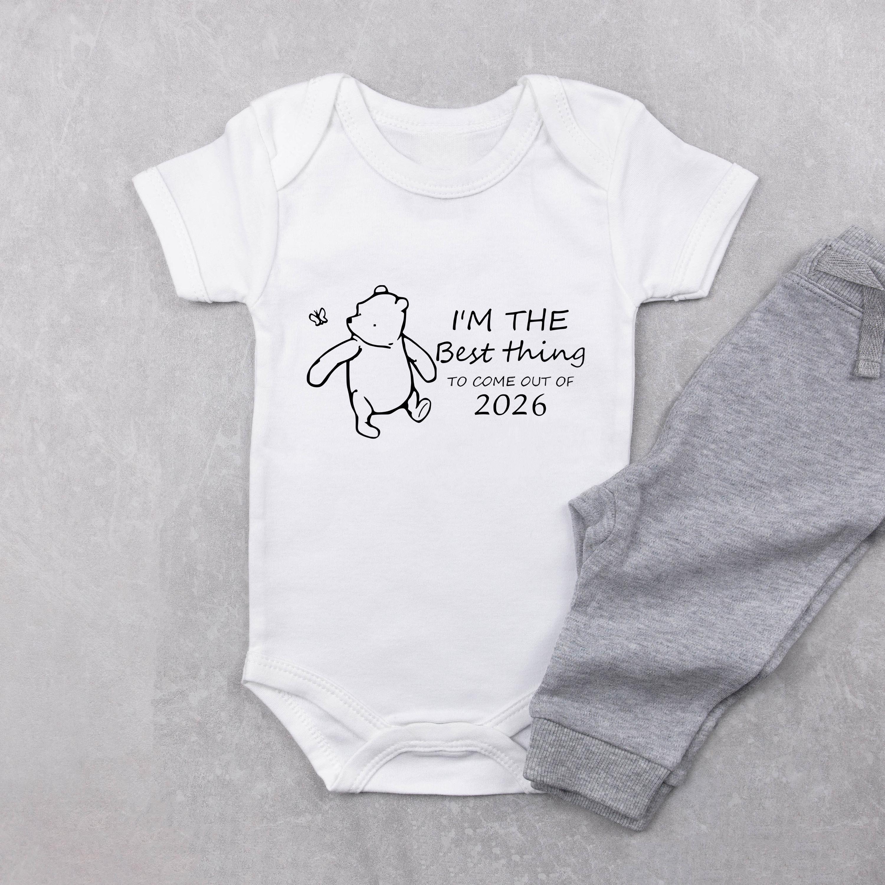 🧸 “Best Thing to Come Out of 2026” Baby Onesie – Classic Pooh‑Inspired Bear Design