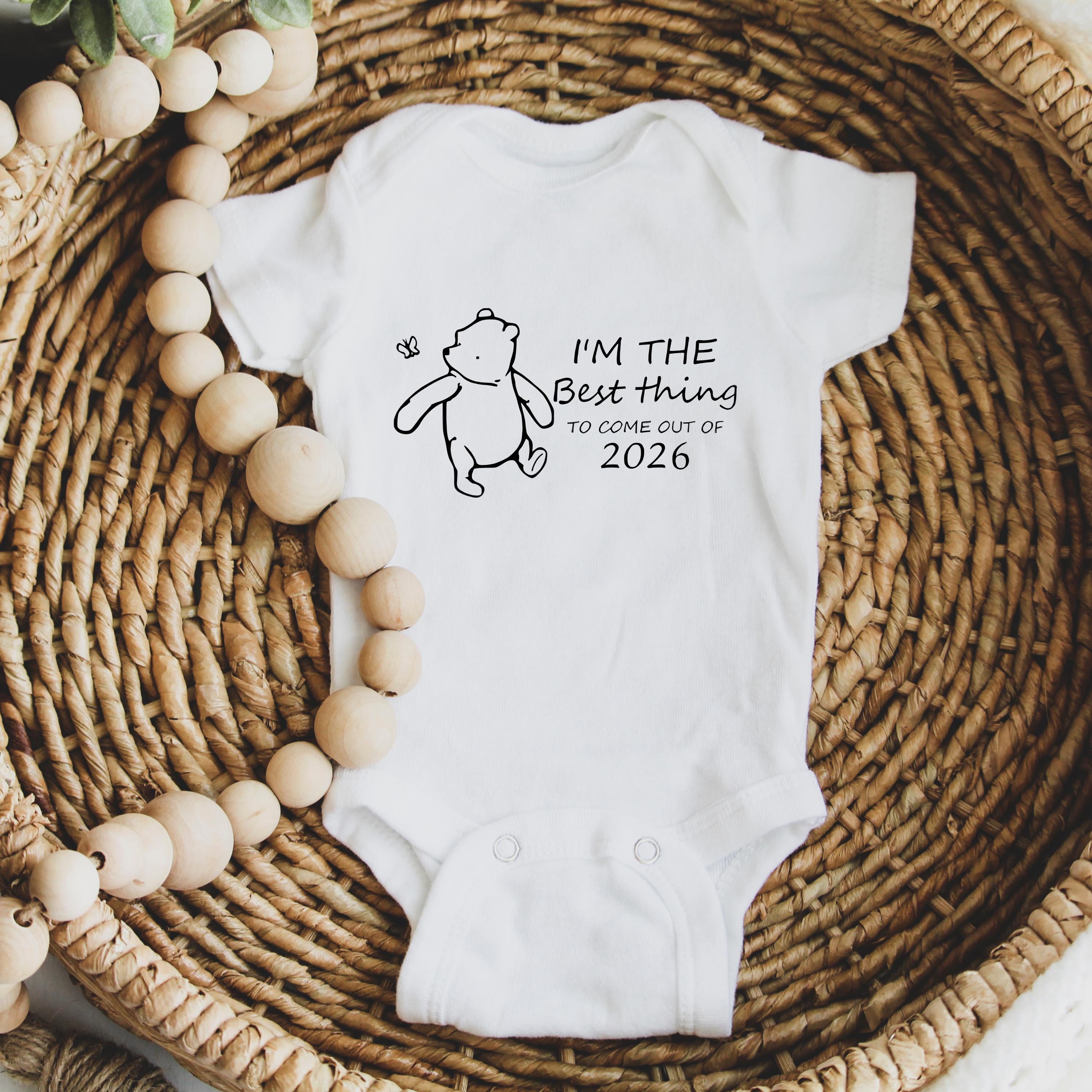 🧸 “Best Thing to Come Out of 2026” Baby Onesie – Classic Pooh‑Inspired Bear Design