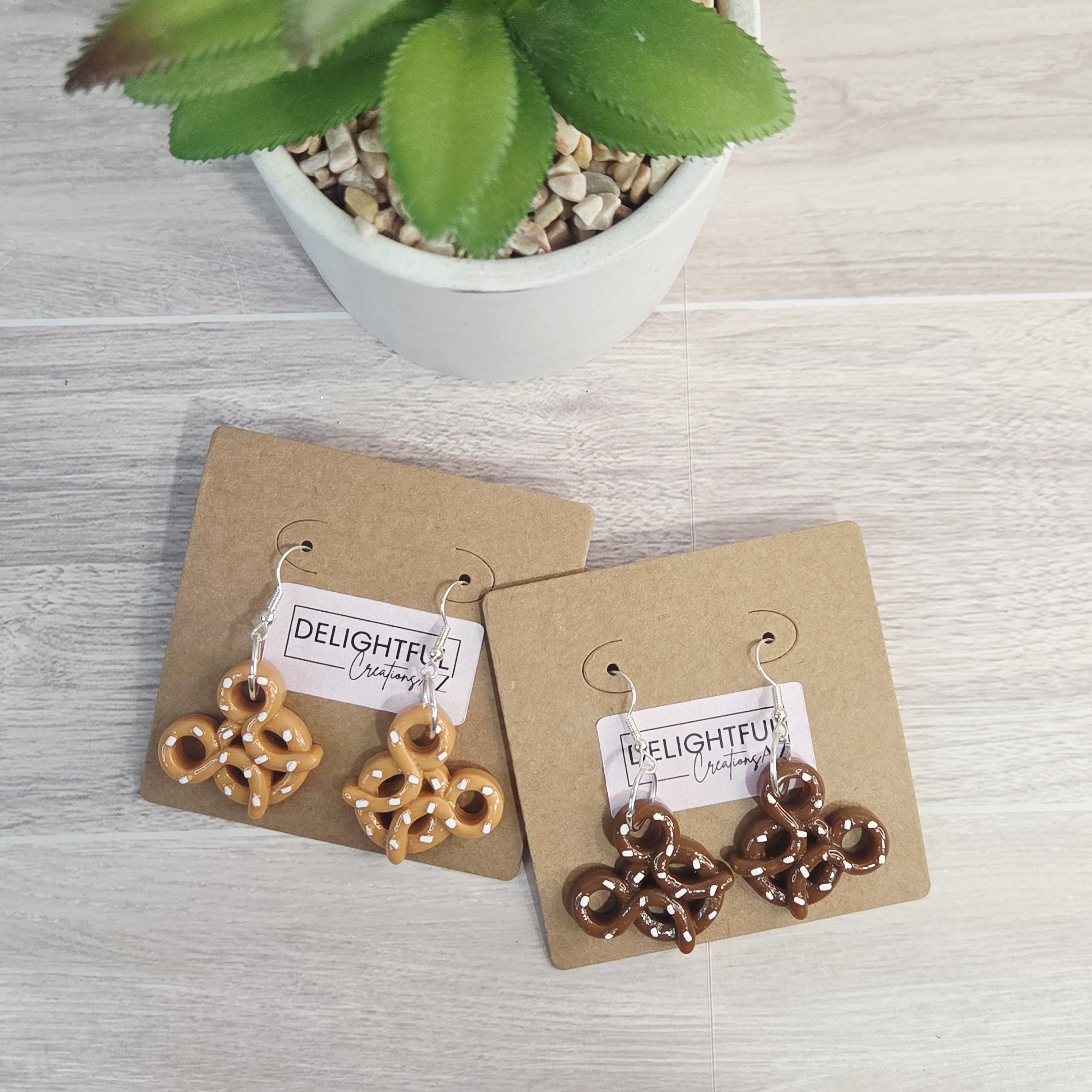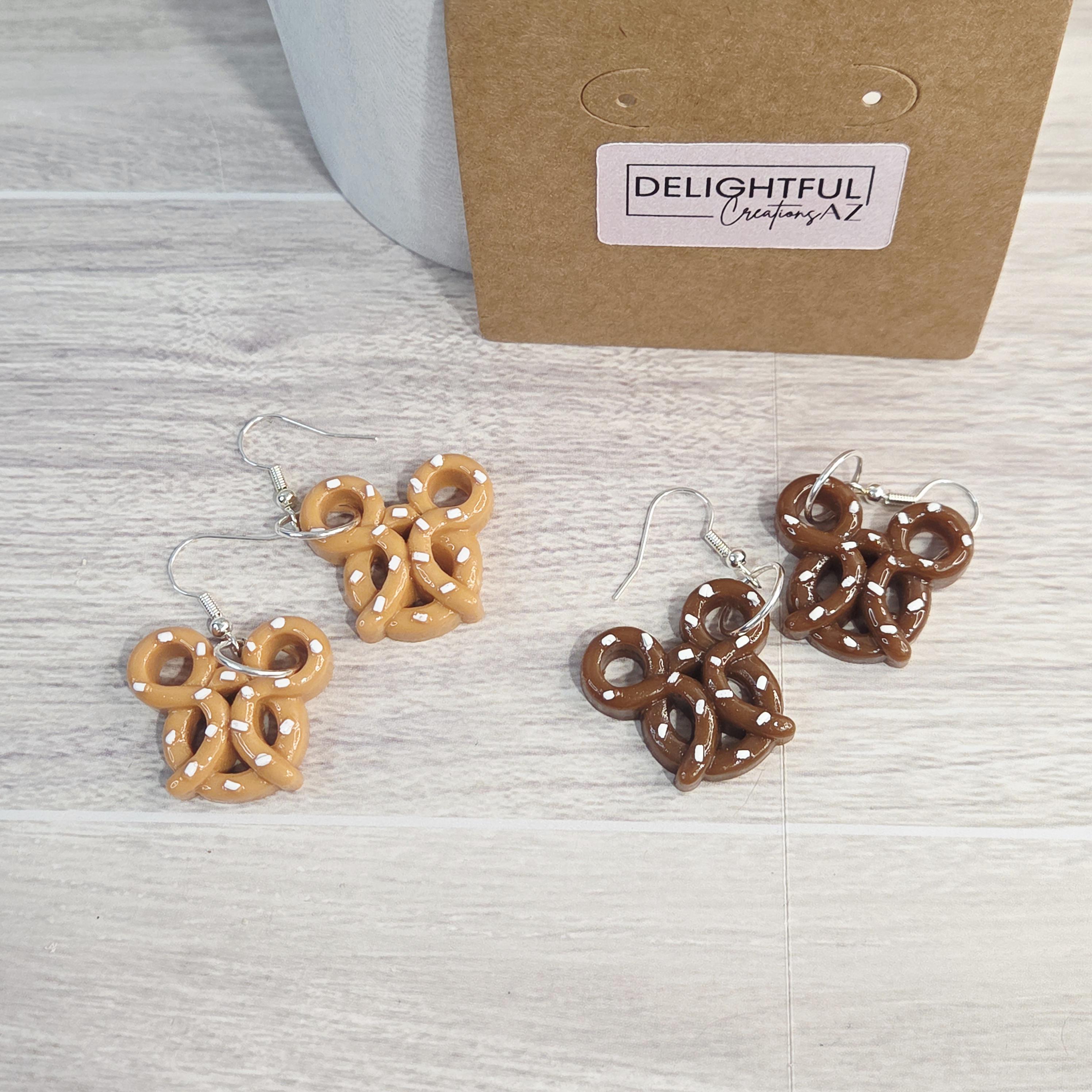 Add a dash of park‑day magic to your outfit with these adorable Mickey Pretzel dangle earrings. Handmade from glossy resin, each pair captures the charm of your favorite Disney snack—whether you love the classic salted pretzel or crave a chocolate‑covered treat.