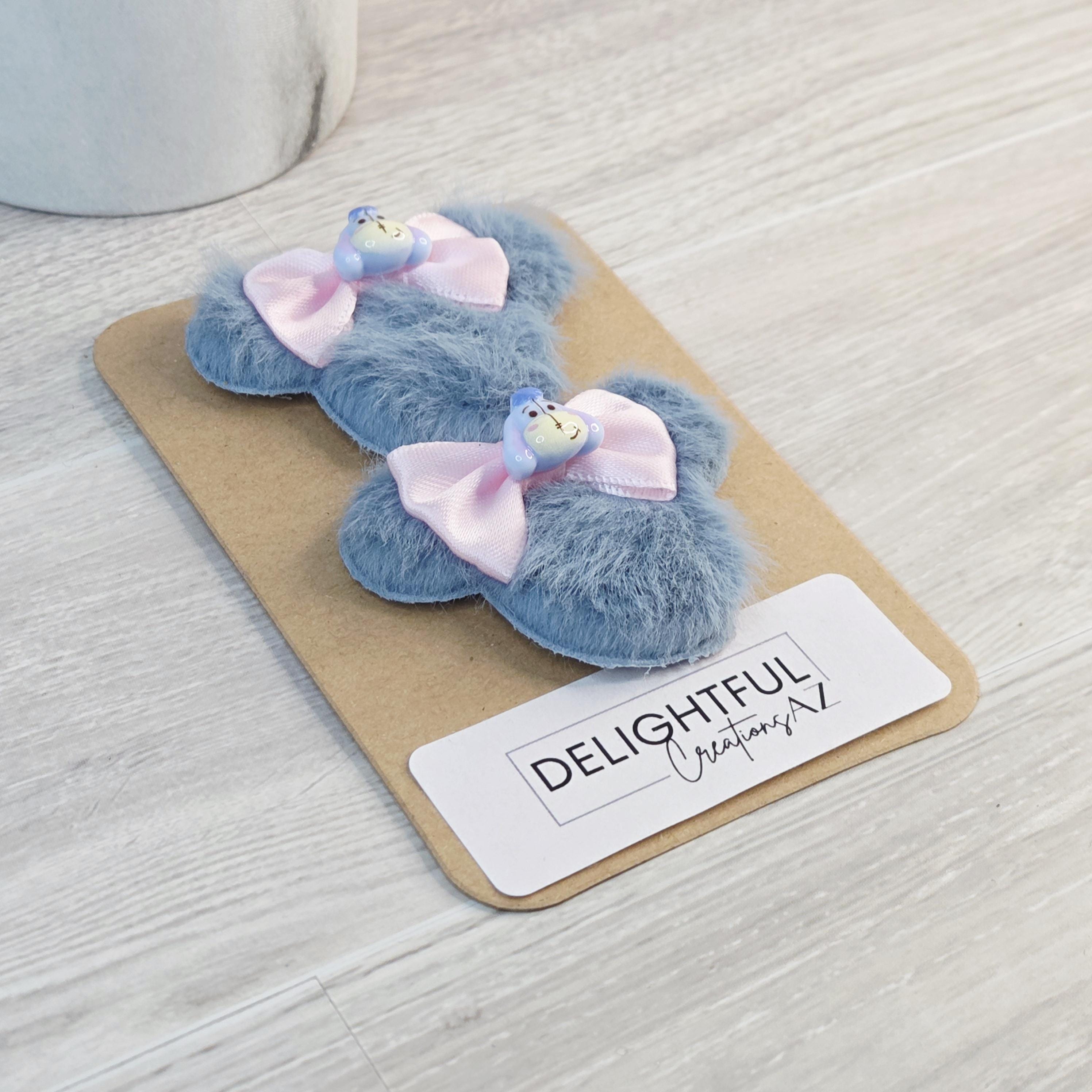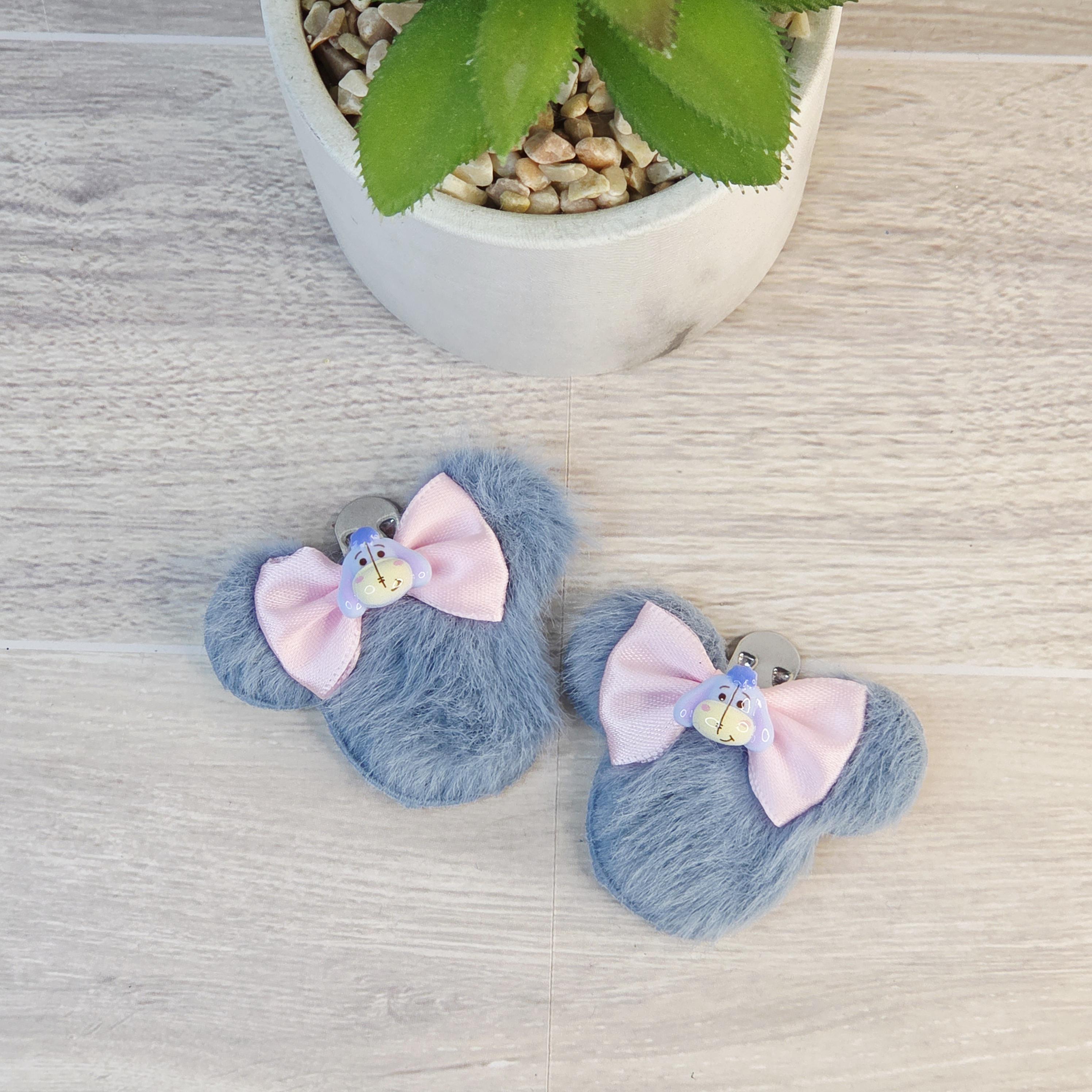 - Bundle Left → 1 left-side hair clip (duckbill/alligator, pink ribbon) + 2 matching shoe clips