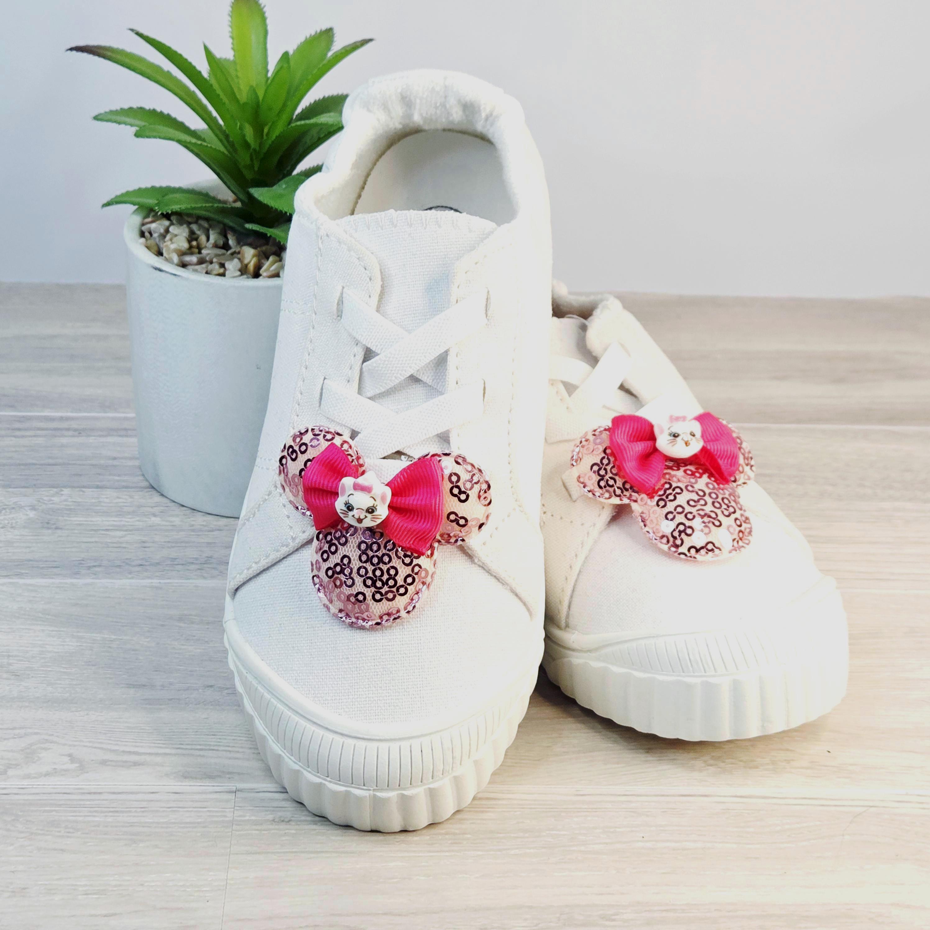 - Bundle Left → 1 left-side hair clip (duckbill/alligator, pink ribbon) + 2 matching shoe clips
