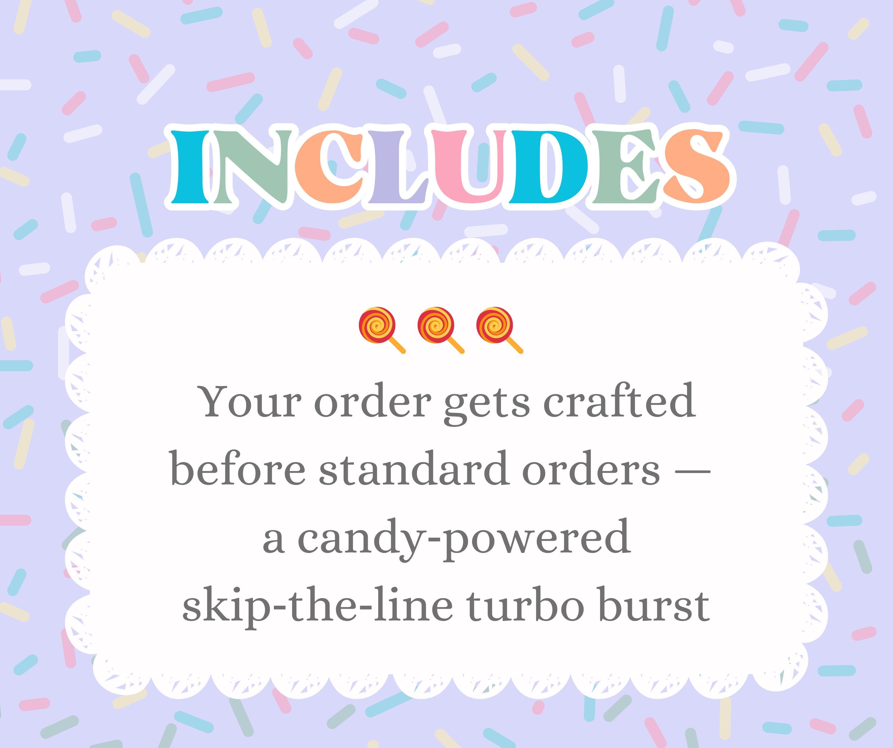 🍭 Your order gets crafted before standard orders — a candy‑powered skip‑the‑line turbo burst